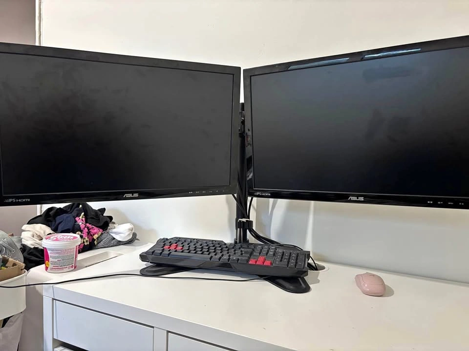 - 2x 23 inch monitors, stand included - good as new - no dead pixel - 350 OBO PU Sherwood Park