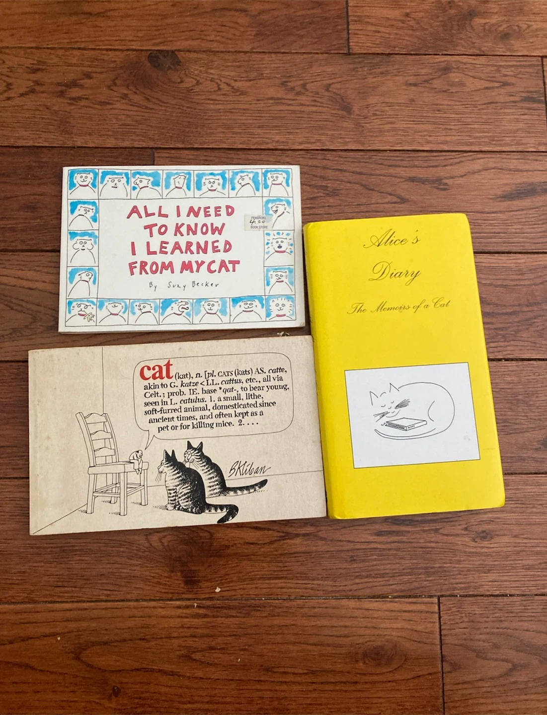 Selling a bundle of three cat-themed books! Includes "All I Need to Know I Learned From My Cat" by Suzy Becker, "Alice's Diary: The Memoirs of a Cat", and another book featuring illustrations by B Kliban. Perfect for cat lovers!