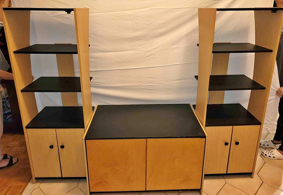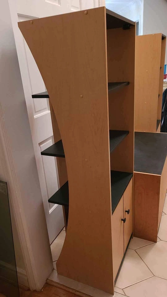 3 piece entertainment unit (1 TV console and 2 towers with shelves) Console: 38" width x 24" Depth x 23" Height Towers: 20.4" Width x 16" Depth x 60" Height Some scuffs and scratches on top of tv console but not very noticable. All 3 pieces $90 or best offer. Located south of Weston Rd and Rutherford Rd. Cash only Pick up only