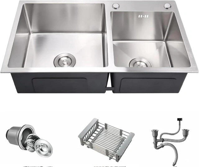 Sink and Pipes Only, No Faucet Retails for $307 on Amazon - purchased at auction but too small for our space. https://www.amazon.ca/Undermount-Kitchen-Nano-Coated-Stainless-Accessories/dp/B0CBPLX1ZM NOTE: The sink itself is brand new except for a small scratch ~1-2cm in diameter on the floor of the left bowl, and the drain tray has some dents in one of the pipes but still extends and closes. See last 2 photos for reference. Compact & Versatile Size: Measures 30.7" L x 17" W x 8.7" D; ideal for small kitchens, bars, or limited spaces. Durable Construction: Made from premium T304 stainless steel; resistant to rust and corrosion for long-term use. Sound Dampening Design: Equipped with undercoating and rubber pads to reduce noise and vibrations; helps prevent moisture buildup. Handcrafted with Smart Features: Slightly sloped bottom with X-grooves for efficient drainage; 3.5" drain fits standard garbage disposals.