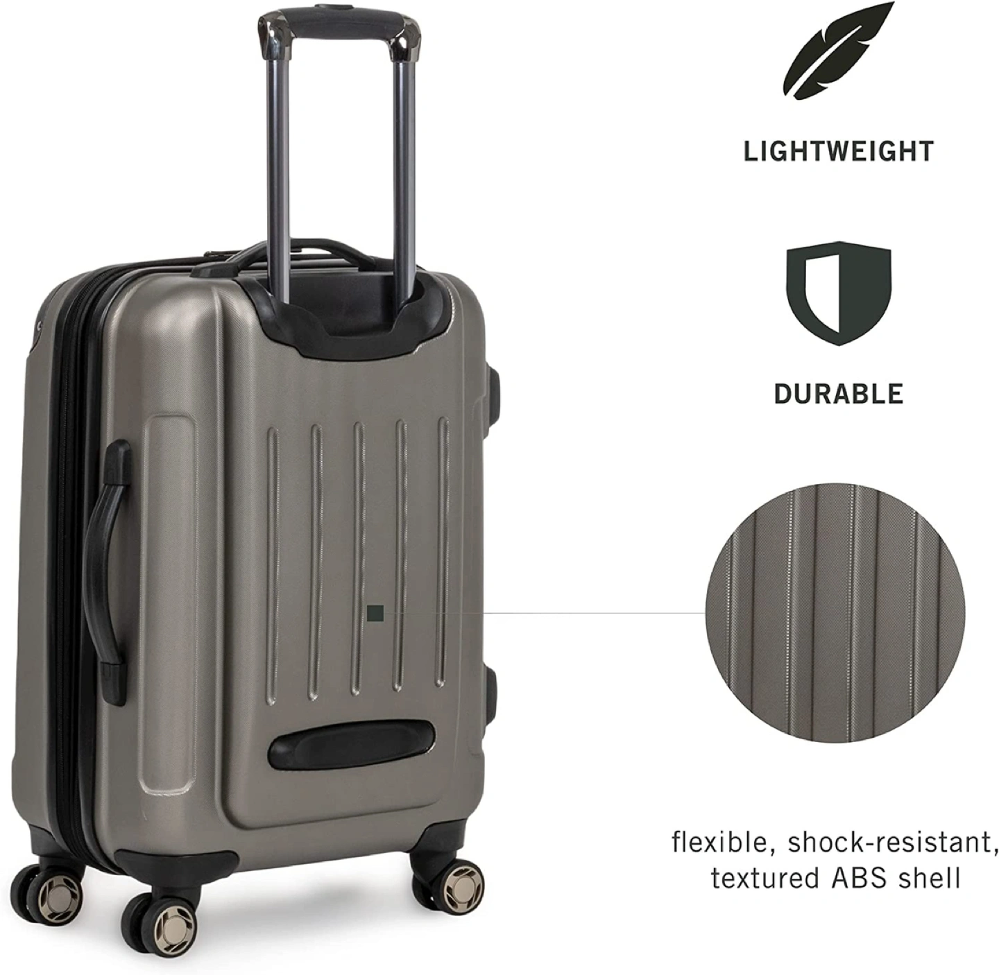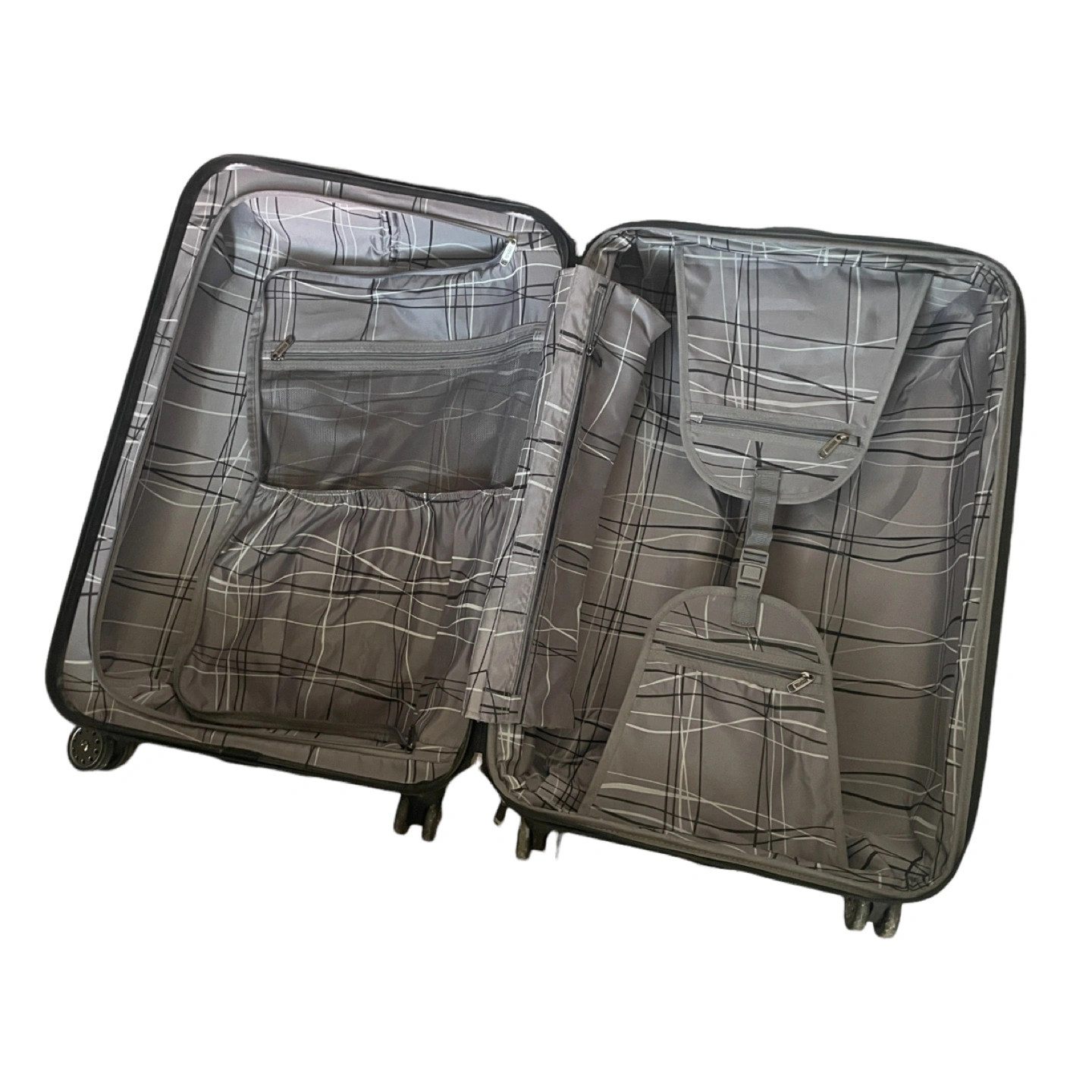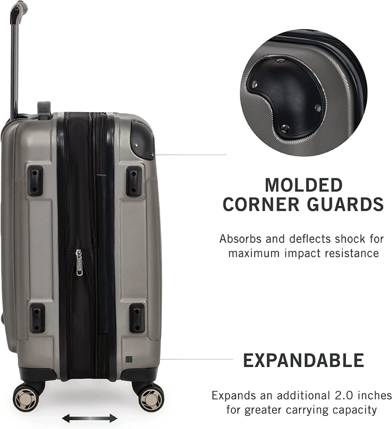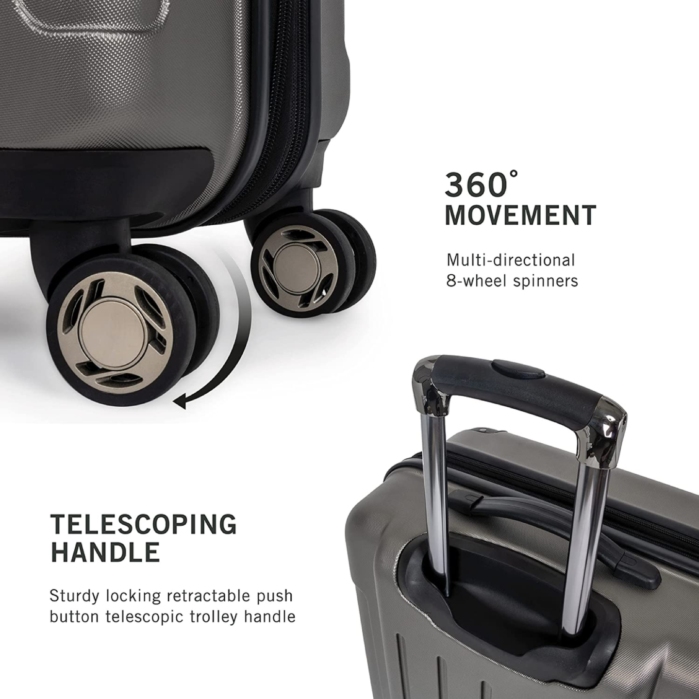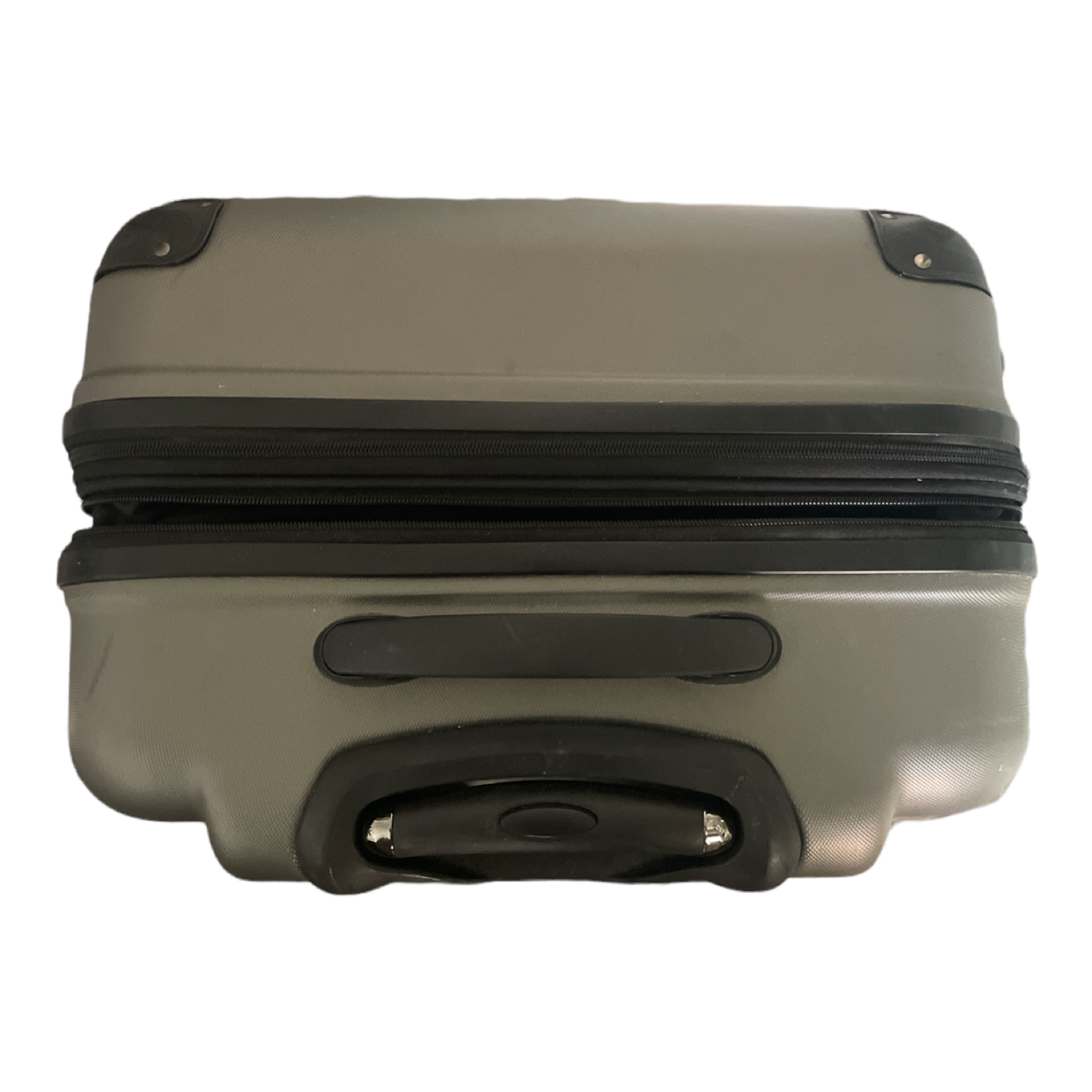 Kenneth Cole Reaction Grey Hardshell 28" Checked Luggage Suitcase Gently used condition - a few small scratches and bumps Lightweight, durable, flexible, shock-resistant, textured ABS shell. Adjustable clothing compression panel, multiple mesh zipper pockets, two elastic pockets fro additional storage, multi-directional 8-wheel spinners, sturdy locking retractable push button telescopic trolley handle, molded corner guards, expandable. Dimensions includes wheels: 30" H x 22.5" L x 13"-15" d. Weight 11.0 lbs. More measurements available upon request.