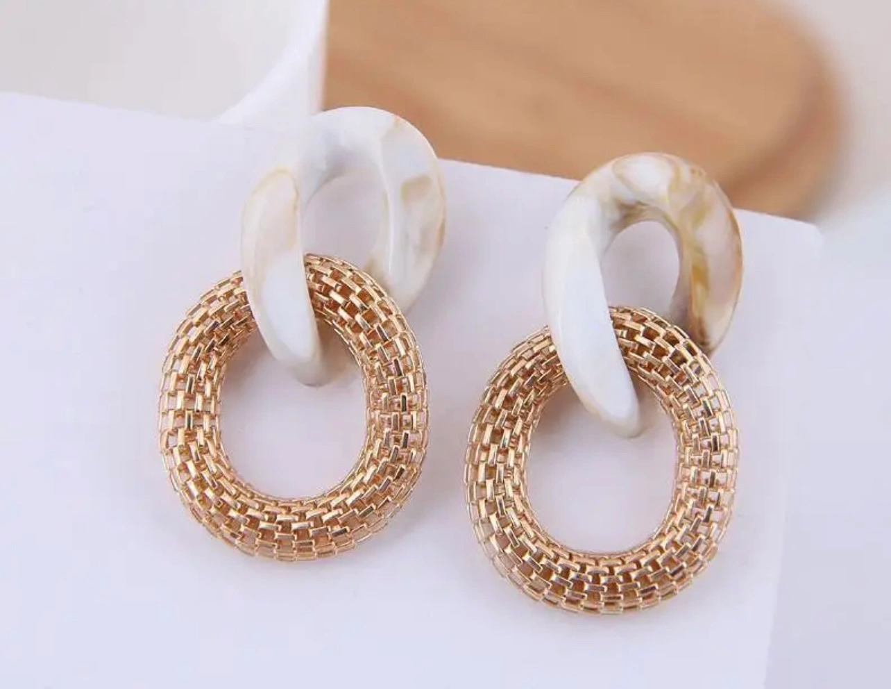White and gold resin earrings - Brand new Lead and nickel free Dimensions: 2.3 cm X 3.6 cm (W x H) Colours available: gray, green, blue, and red Check my other listing Pick-up ONLY: 1145 Logan avenue, Toronto