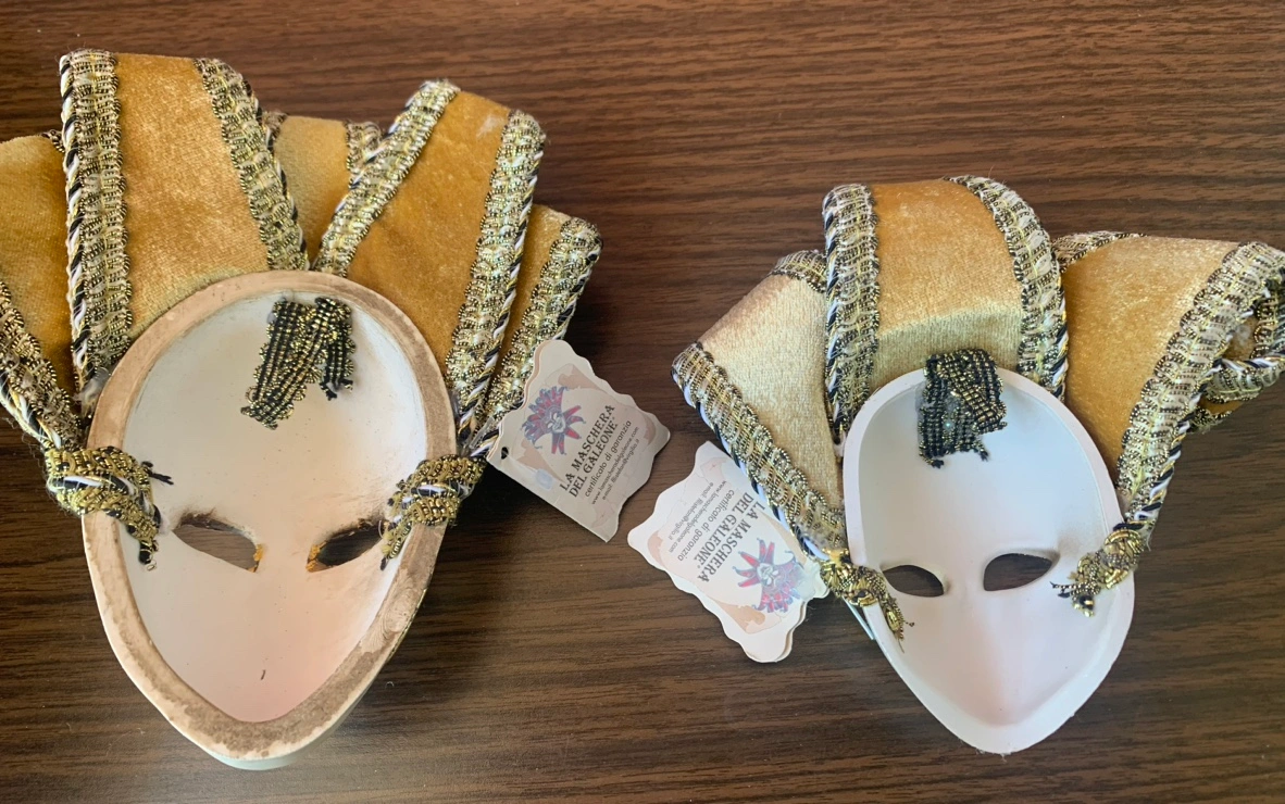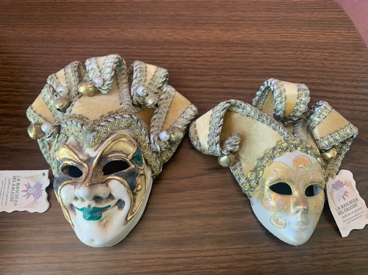 Two beautiful hand-painted Venetian carnival masks. Each mask has a tag attached that reads "La Maschera del Carnevale" $28 for two masks Pick them up near Richmond Centre