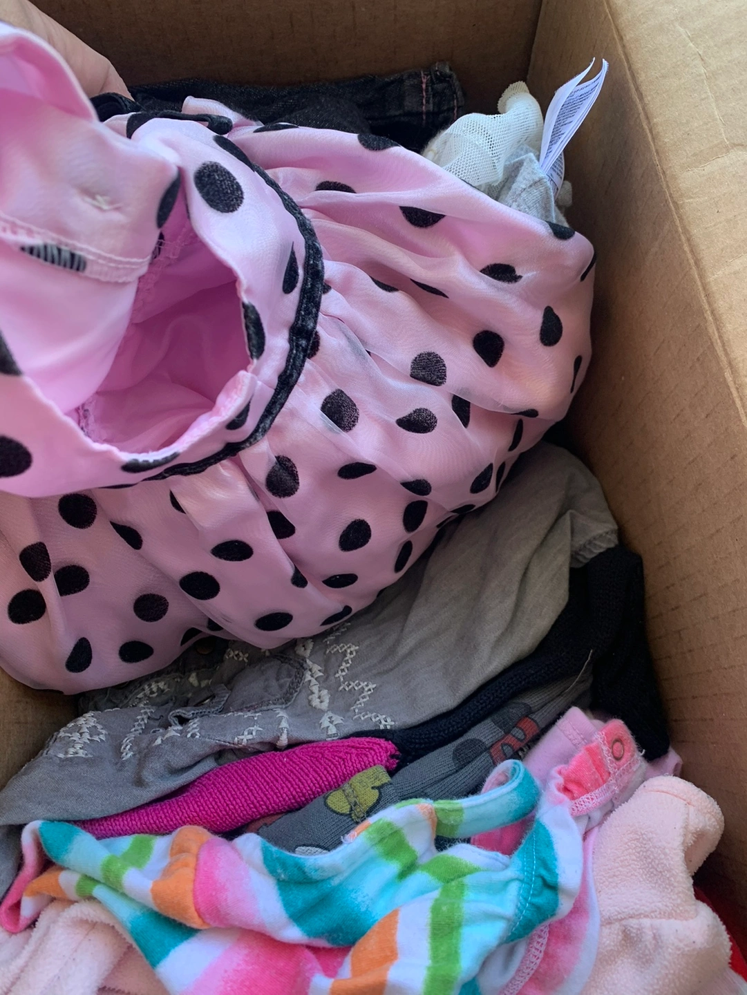 This bundle includes a variety of baby girl clothing items in various colours and patterns. The items are in a variety of sizes. The bundle contains: 3 onesies, 4 pairs of socks, 2 tops, 1 skirt, 2 hats, and 1 pair of shoes. This is a great way to stock up on baby clothes for a great price. Pick them up near Richmond Centre