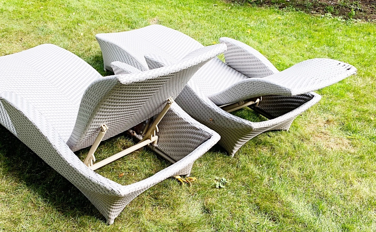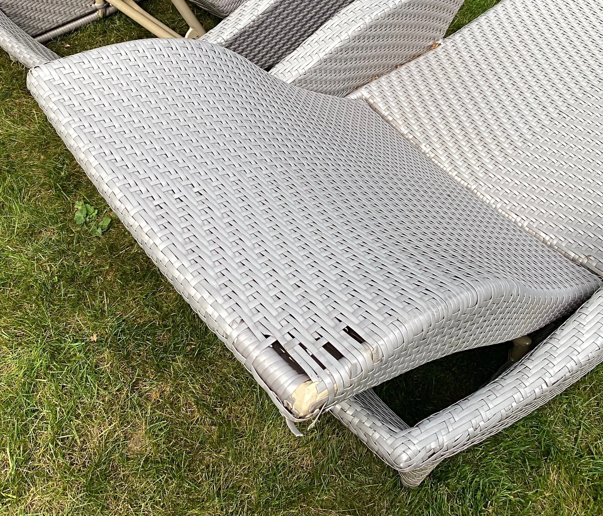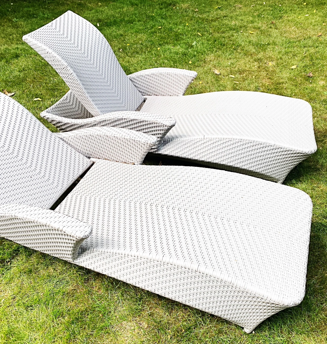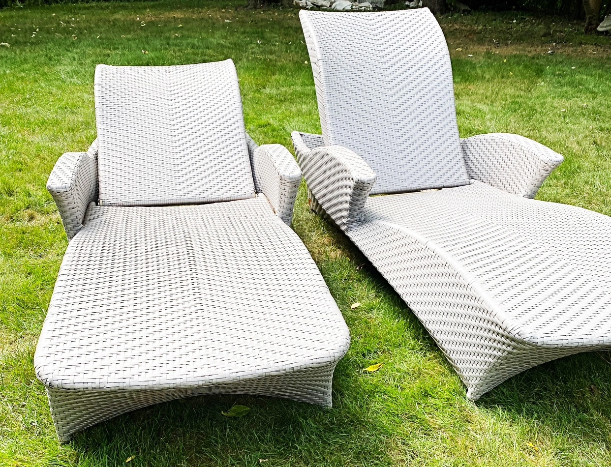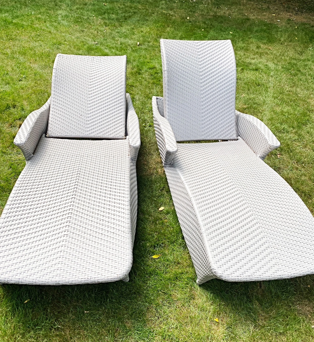 Set of 2 White Wicker Pool Lounge chairs in excellent condition except for the one chair has a some damage at the top. There were very expensive, over $1000 so I am set for 1/2 price $500 or best reasonable offer.