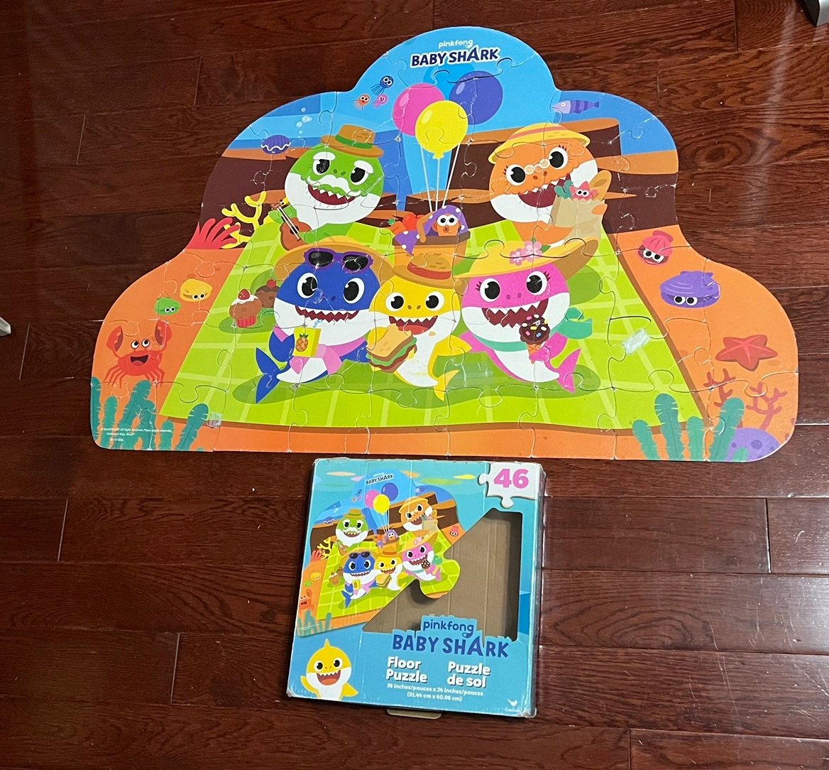 This is a well used 46 piece Baby Shark floor puzzle (pieces might not be tight, a few might be taped up). Porch pickup near Porch pickup near Donald Cousens Parkway and Highway 7 in east Markham OR can bring to work on certain days near Weston and Steeles