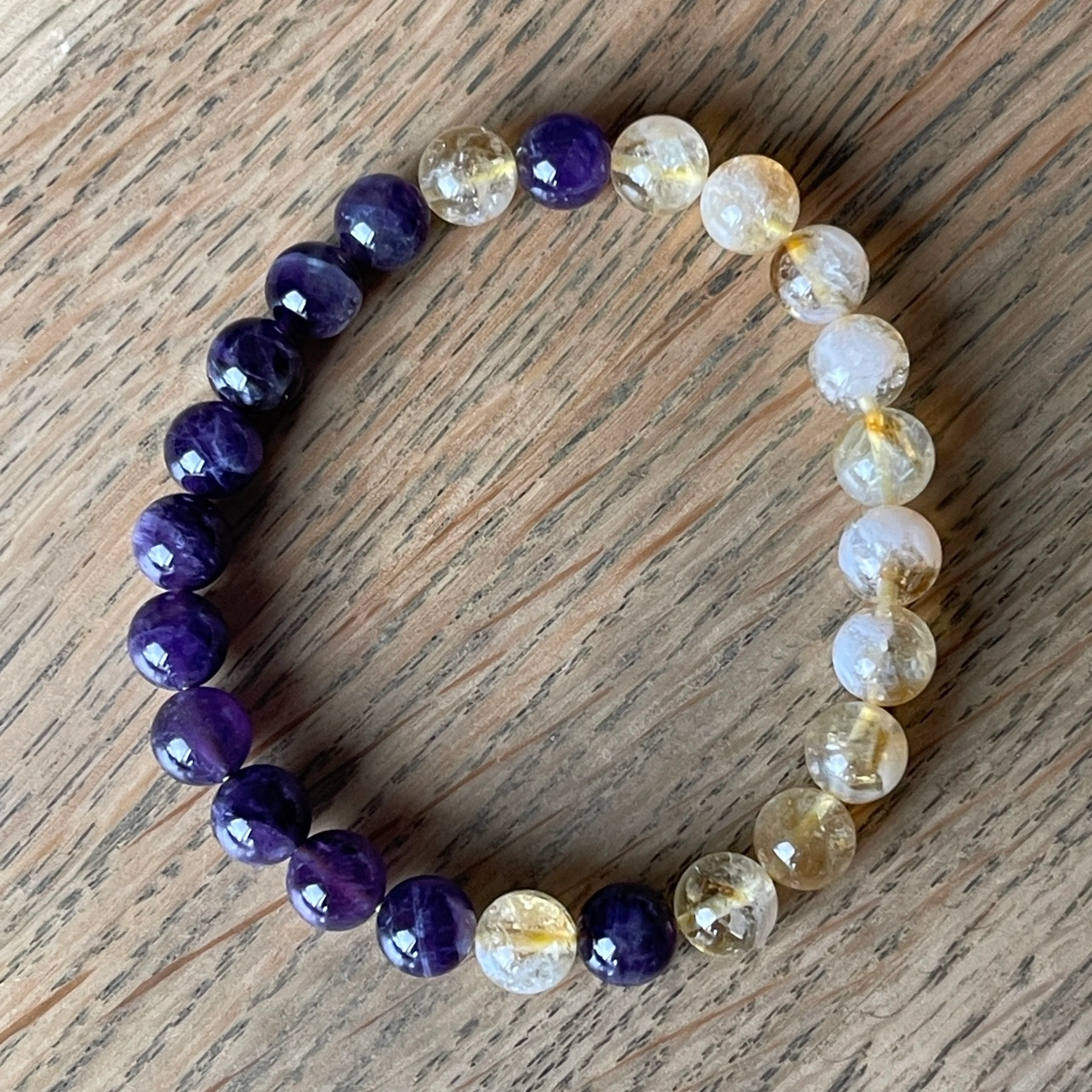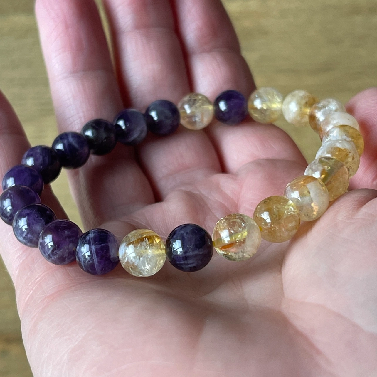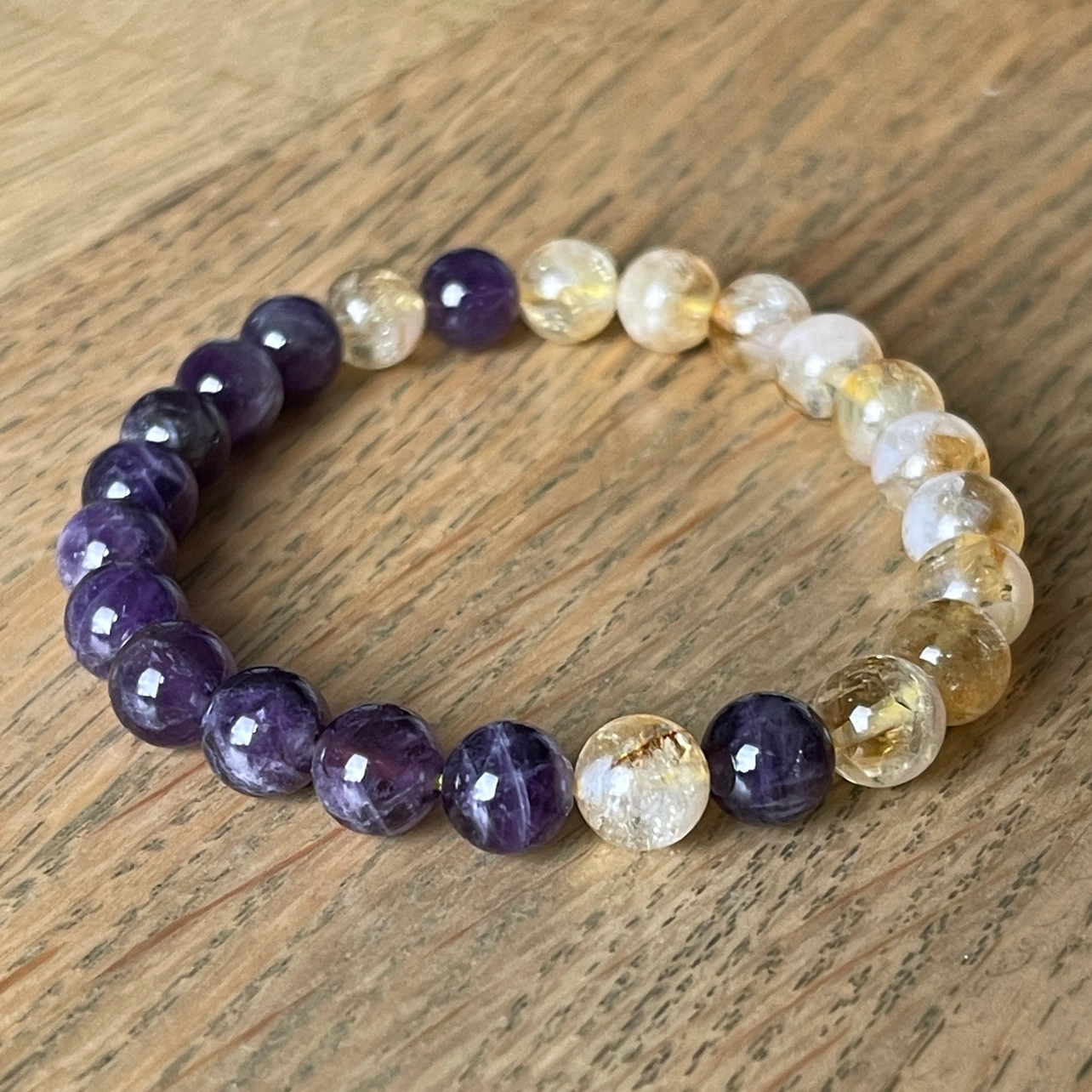 Yin Yang design inspired handmade bracelet. Wrist size: approximately 18cm (7.1 inches) 8mm bead size. Amethyst is known as the master healing stone, this powerful and protective gem carries a strong spiritual energy. It is revered for its ability to enhance spiritual awareness and connection. Chakra is crown. Citrine has a radiant energy that attracts success, foster optimism, and boosts self-confidence. Chakra is solar Plexus. Pick up in Woodlands SW. Please check my other ads and reach out with any other questions. Cheers!