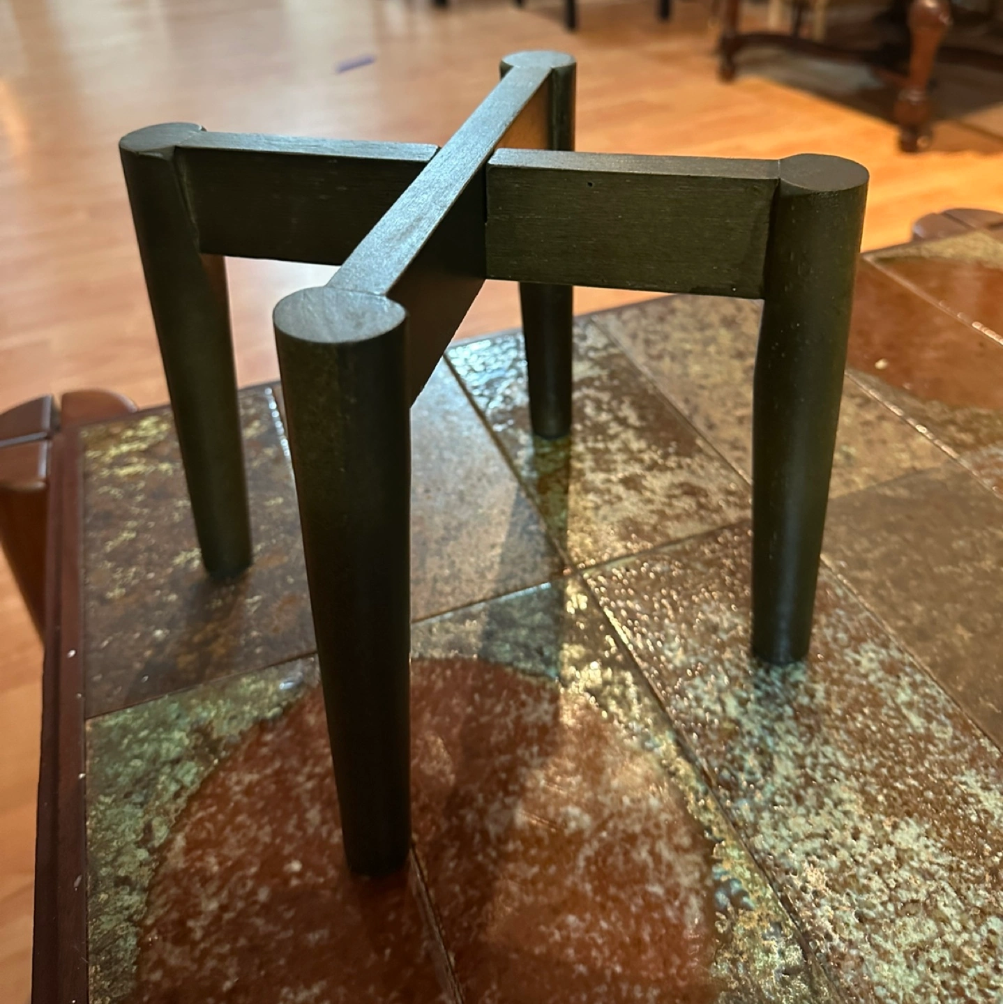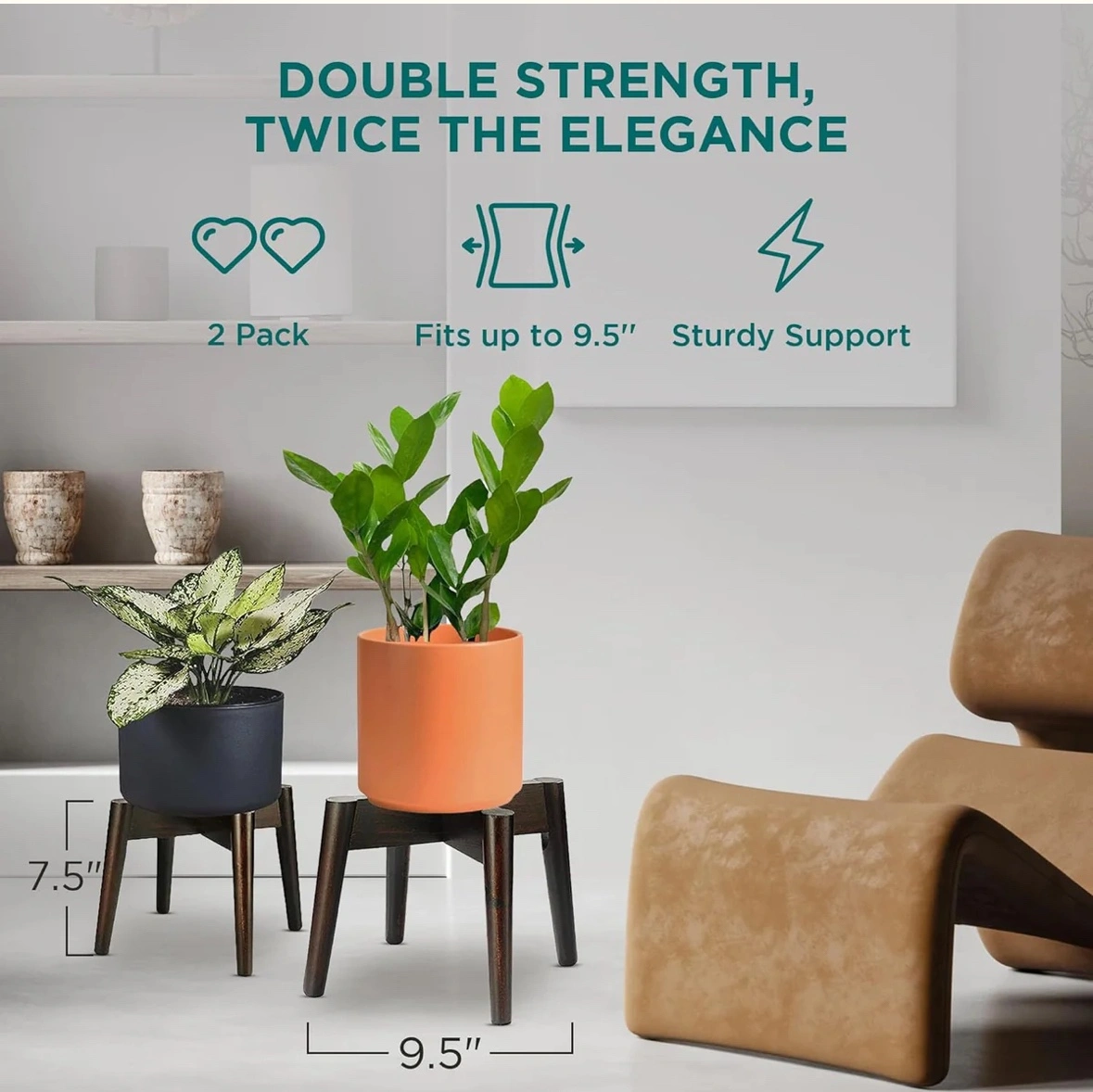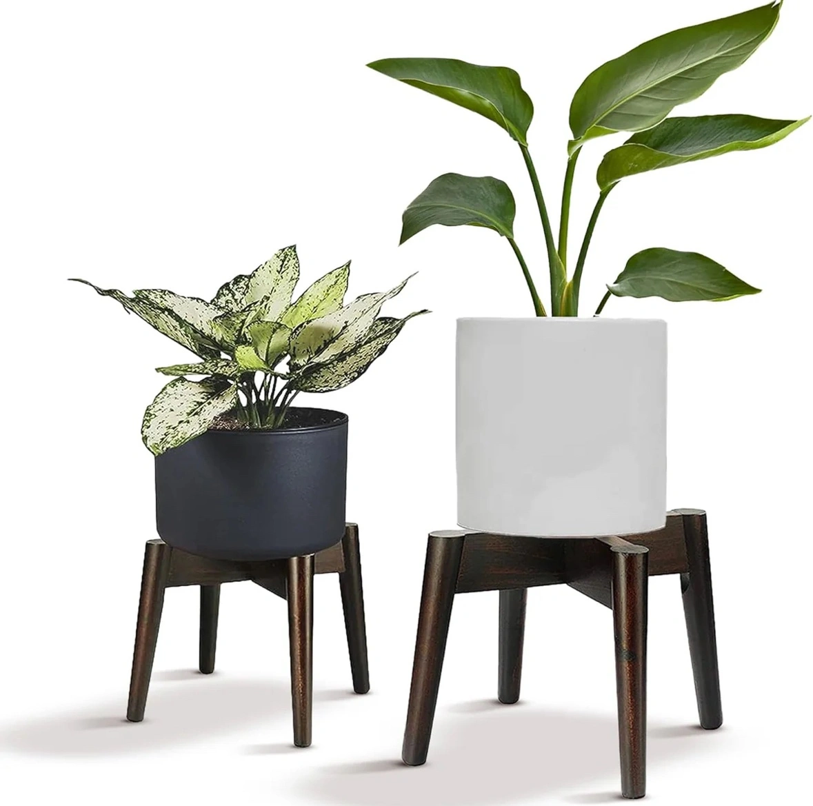 Set of 2 plant stands in a dark wood colour. Stands are made of acacia wood. The stands are in great condition.
