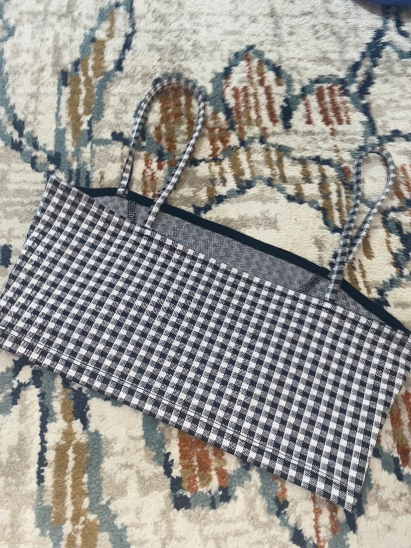 Purchase this item in late 2018. Used to wear it a lot until 2020. Haven’t worn it since. Like brand new. Great condition. H&M logo tag been cut off accidentally from washing. The size is XS. I used to layer this top with thick turtle necks. The colour is black-white-grey scheme. there is some stretch to it! I was able to continue wearing this in 2020 when i was a size M… The straps are not adjustable it’s plain spaghetti straps. Smoke Free & Pet Free Household. Pick Up Only, No Delivery. Cash Only. Only reach out if interested in purchasing the item. Do not waste my time.