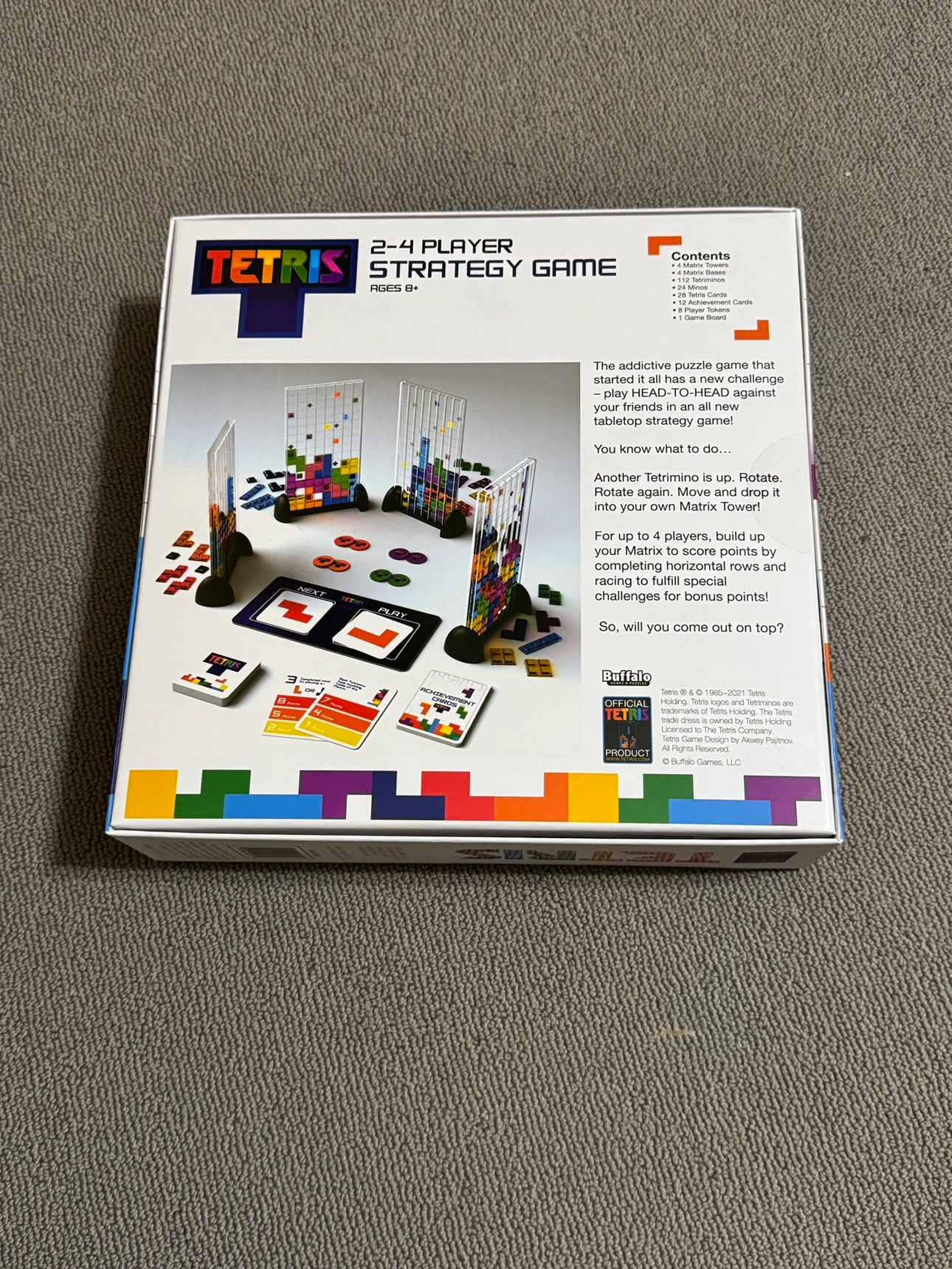 The addictive puzzle game that started it all has a new challenge for you to conquer! Challenge your friends in an all new strategy game! Drop the Tetrominoes one by one, keep your wits about you, and you know what is next: Tetris! You throw the pieces, Rotate, Rotate again. Move and drop it into your own Matrix Tower! For up to 4 players, build up Tetris Towers by carefully placing your pieces. Brand new in box, never opened. Play 2-4 players. Meet up in Bradford. $25