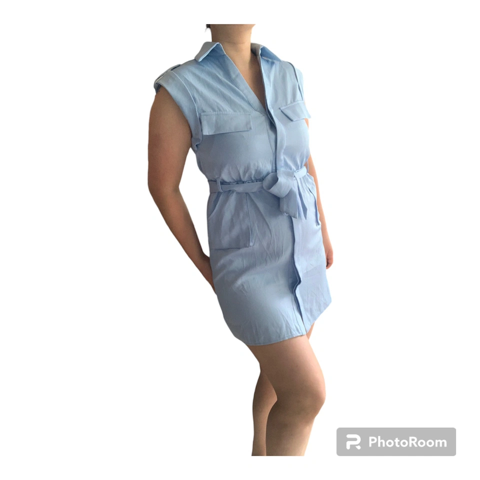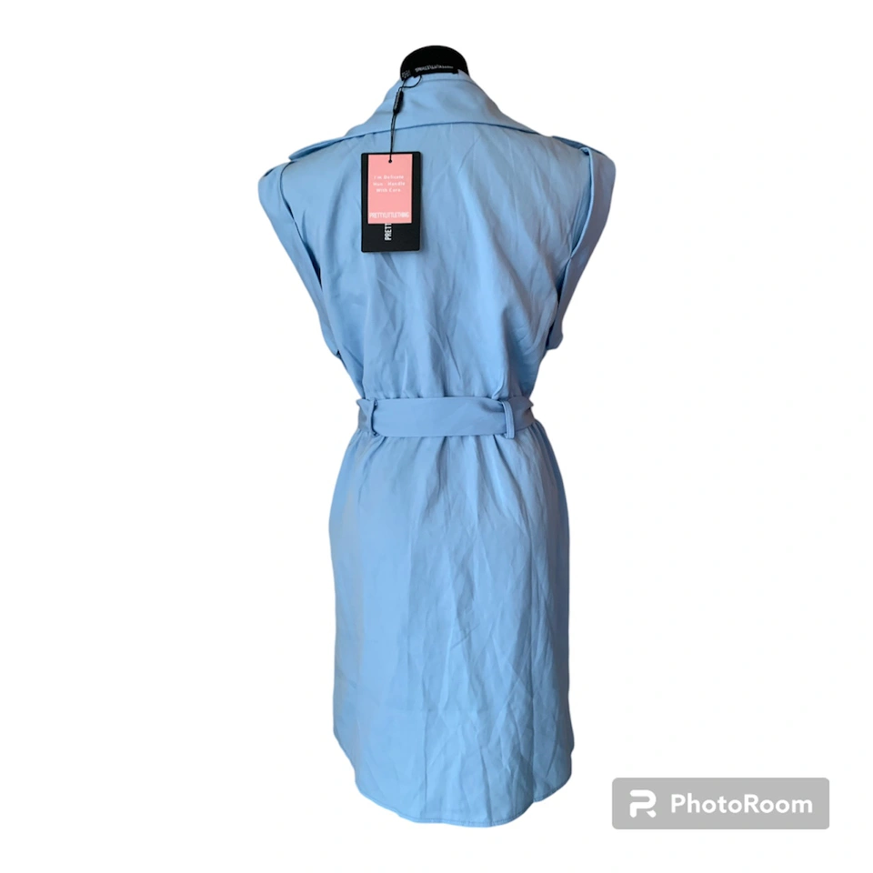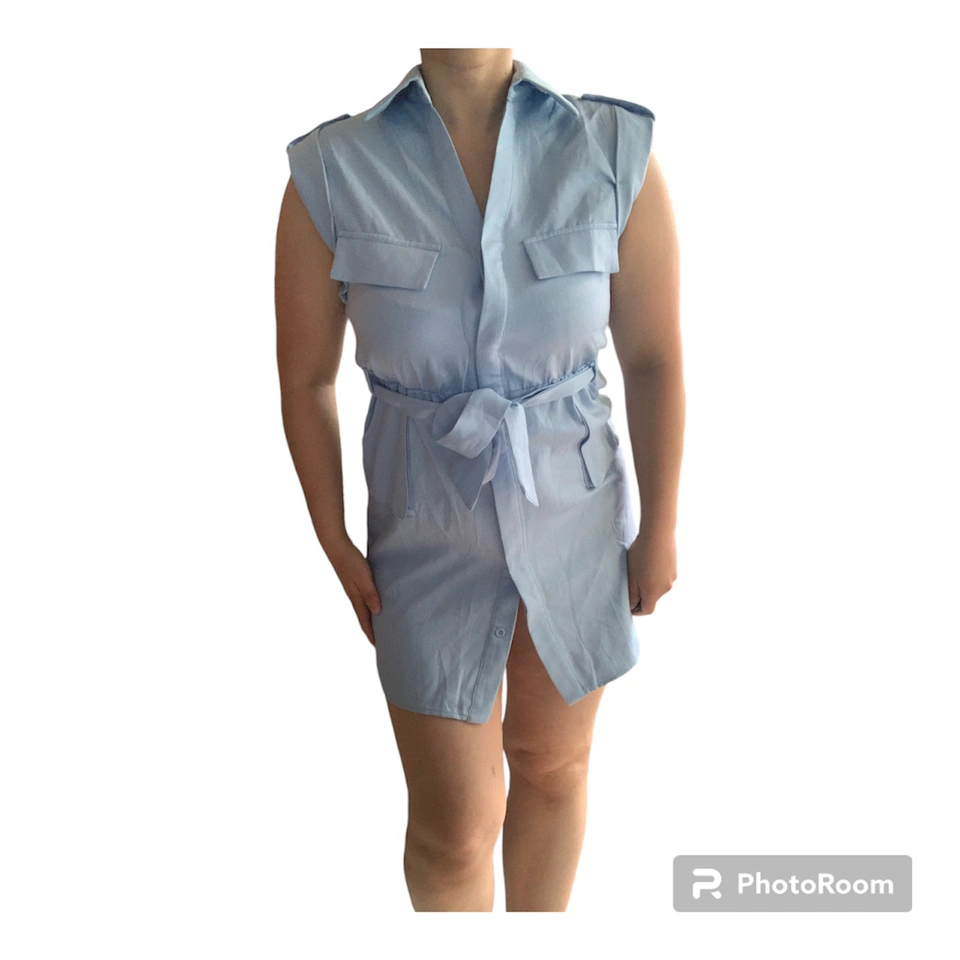 Item: Blue Tie Waist Pocket Detail Sleeveless Utility Bodycon Dress Condition: 10/10! New! Tag still on. Never worn! Designer: PLT Details: .Figure-hugging utility dress .Featuring a cornflower blue material with a tie waist design and pocket detailing .tie-waist belt can be removed Material: 100% Polyester Size in Inches: Small - Medium US/CA size 8 UK 8 EU 36 Bust: 17 Waist: 15 Shoulders: 17 Length of Dress: 33