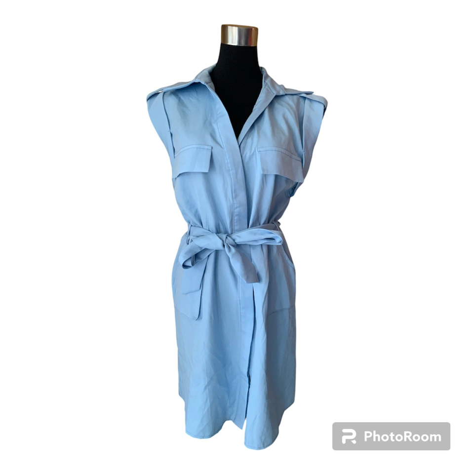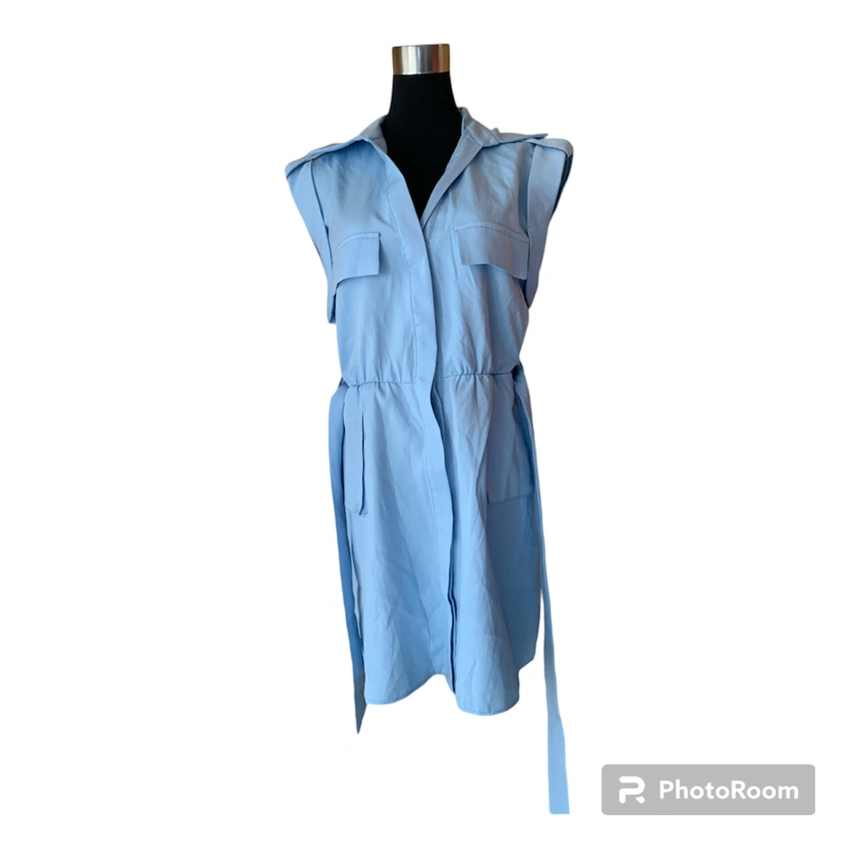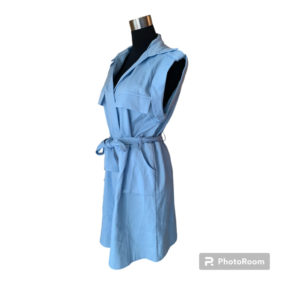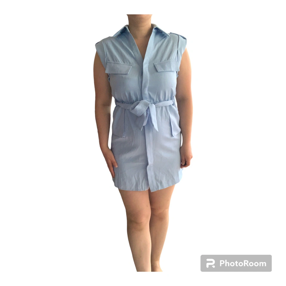 Item: Blue Tie Waist Pocket Detail Sleeveless Utility Bodycon Dress Condition: 10/10! New! Tag still on. Never worn! Designer: PLT Details: .Figure-hugging utility dress .Featuring a cornflower blue material with a tie waist design and pocket detailing .tie-waist belt can be removed Material: 100% Polyester Size in Inches: Small - Medium US/CA size 8 UK 8 EU 36 Bust: 17 Waist: 15 Shoulders: 17 Length of Dress: 33