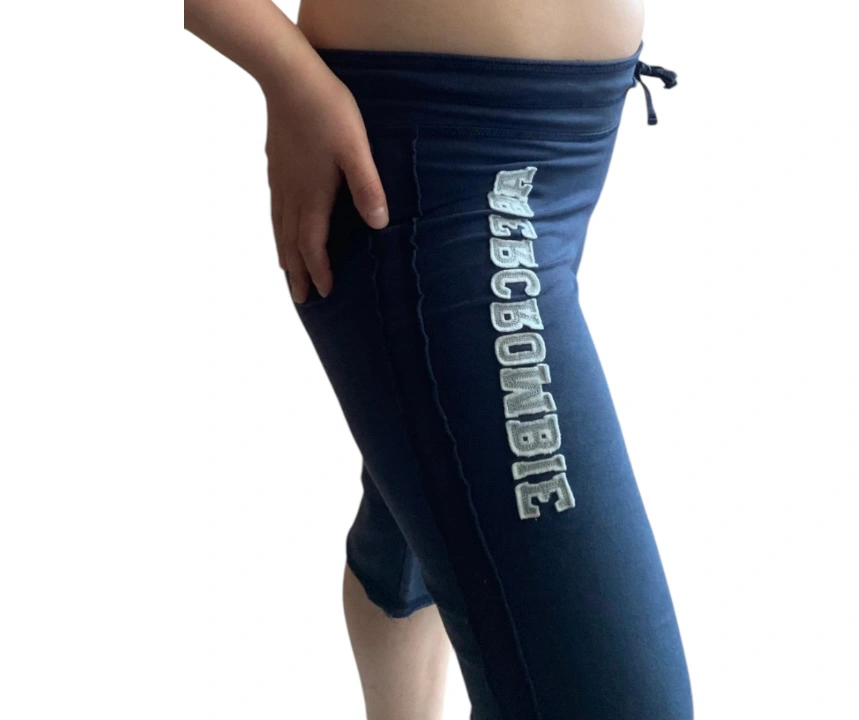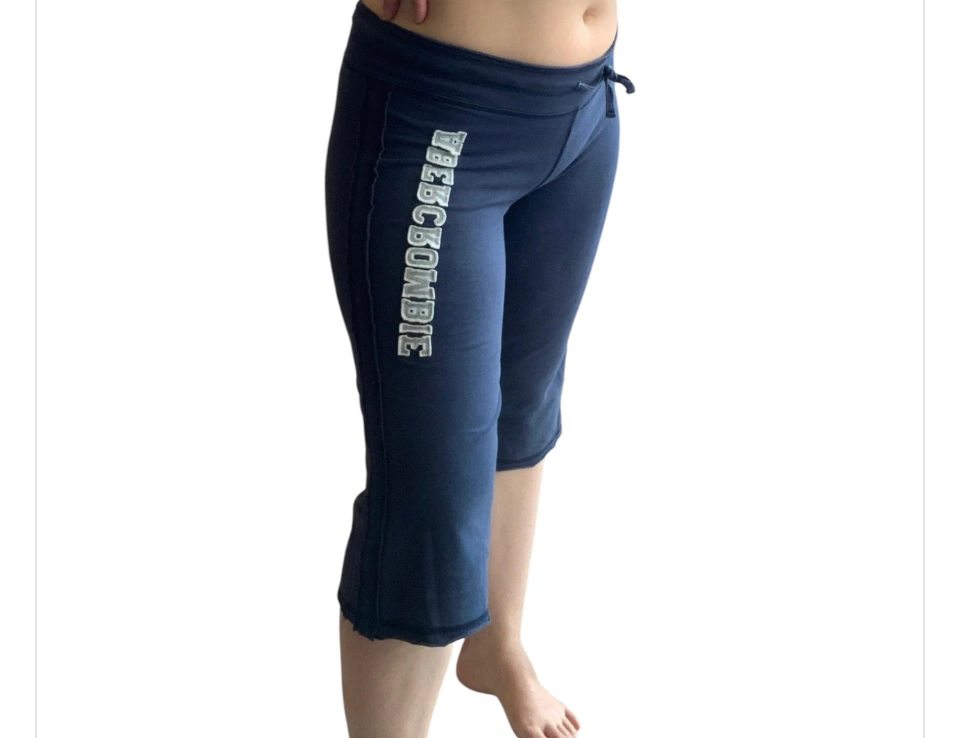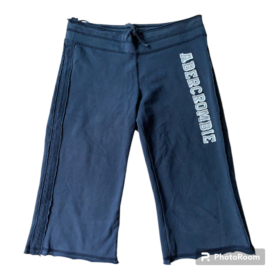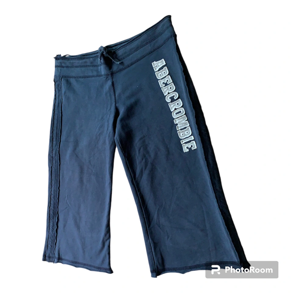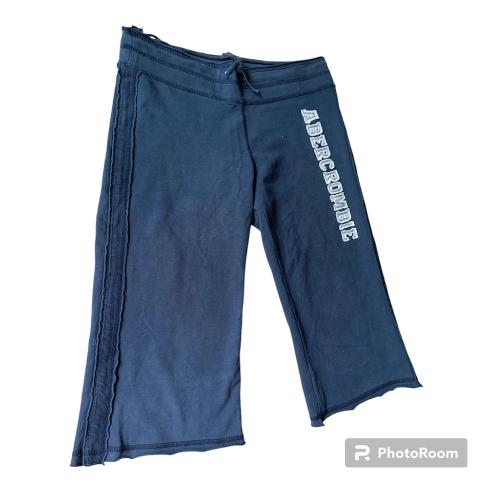 Item: Vintage y2k Abercrombie Athleisure Capri Lounge Pants Condition: 8/10. No Stains/Rips/Tears. Pre-Owned. Fully Functional & Guaranteed High Quality. Measurements (Inches): **Clothing measured on flat surface Model is 5’4 and is a Size Medium Waist: 15 Hips: 17 Thigh: 9 Inseam: 15 Leg Opening: 9.5 Length of Pants: 24 Details: Year: y2k / 2000s Brand: Abercrombie - Printed Logo on the Pant Leg & their Signature Moose Picture at the Back Side Color: Dark Blue Solid Color w/ Abercrombie Logo ‘Stitched-In’ on the Right Side Pant Leg Material: Cotton Stretch Style: .y2k / 2000s .Purposeful Look of ‘Loose-Sewn-In- Stitching’ .Drawstring Waist Yoga Pants .Rise: Low - Fit at the Hips .Leg & Fit: Wider & Straight Fit .Pant Style: Capri Crop / Yoga Pants / Slightly Belled Capris