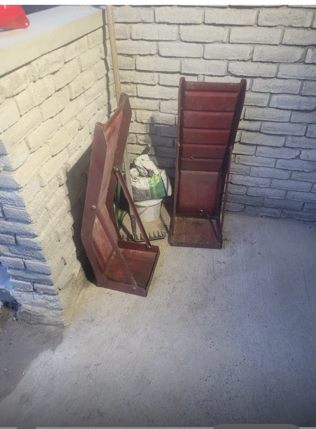 Two metal wheel chocks. They are foldable and can be stored easily. They are in good condition.