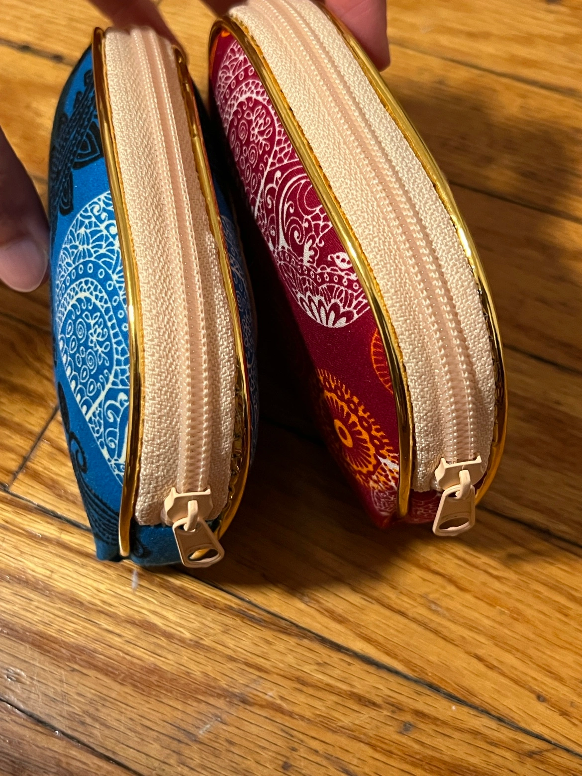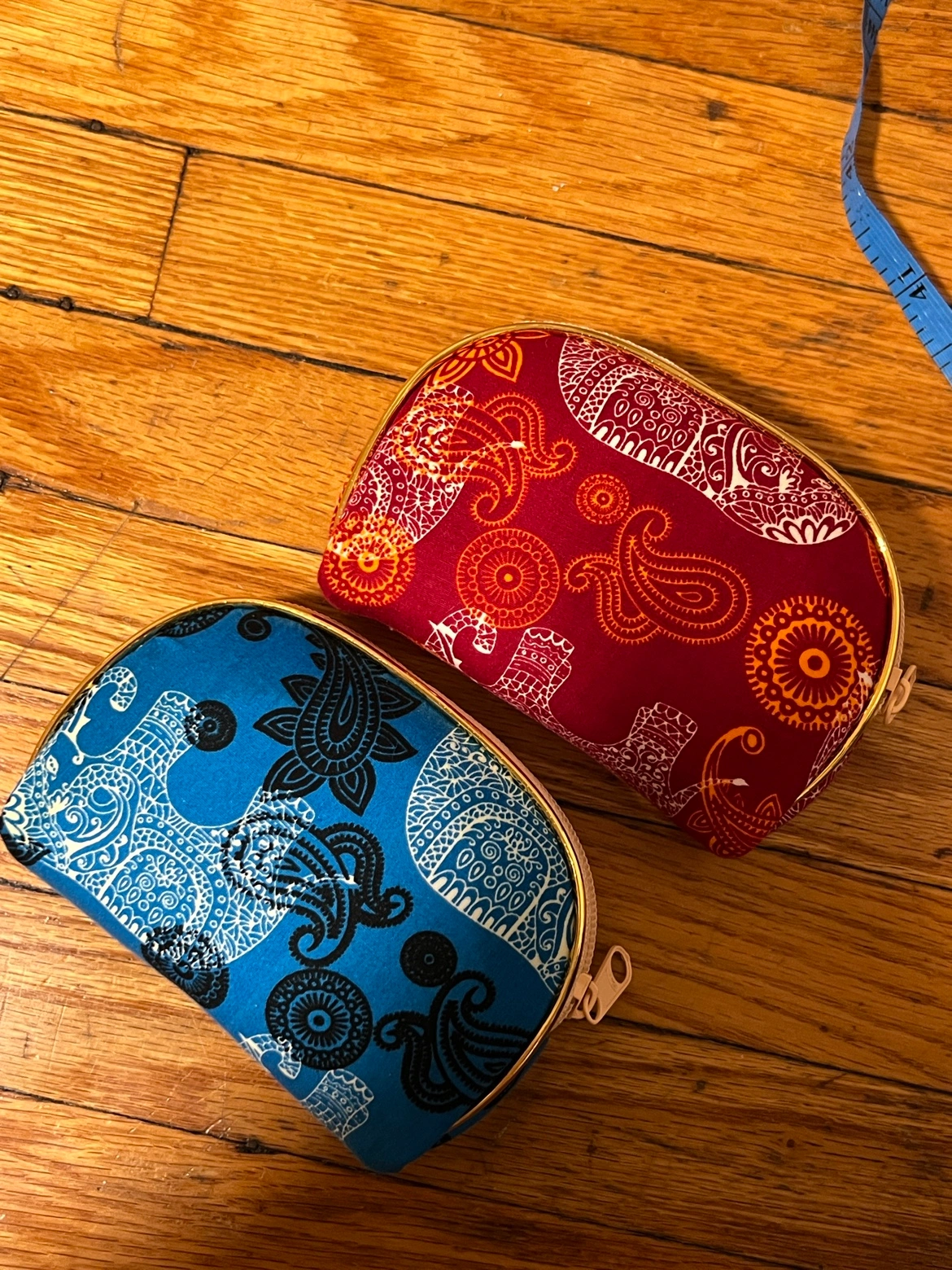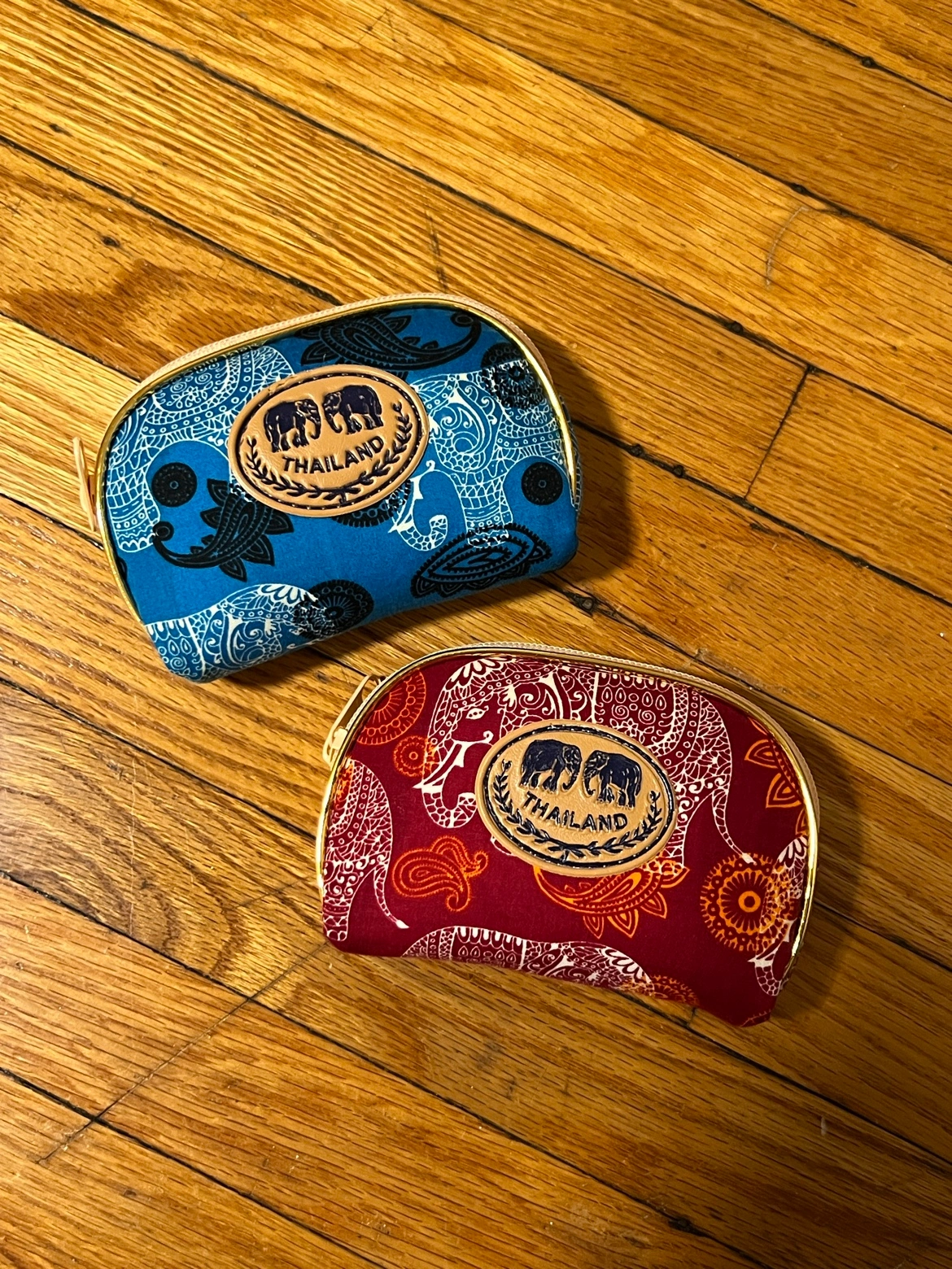 Two small zippered pouches with an elephant design, from Thailand