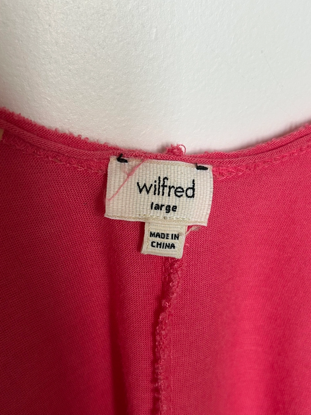 Pink Wilfred tank top with a V neck and a button at the top. Soooo soft and such a cute pink colour. Gently worn. For pickup Feel free to message with any questions!