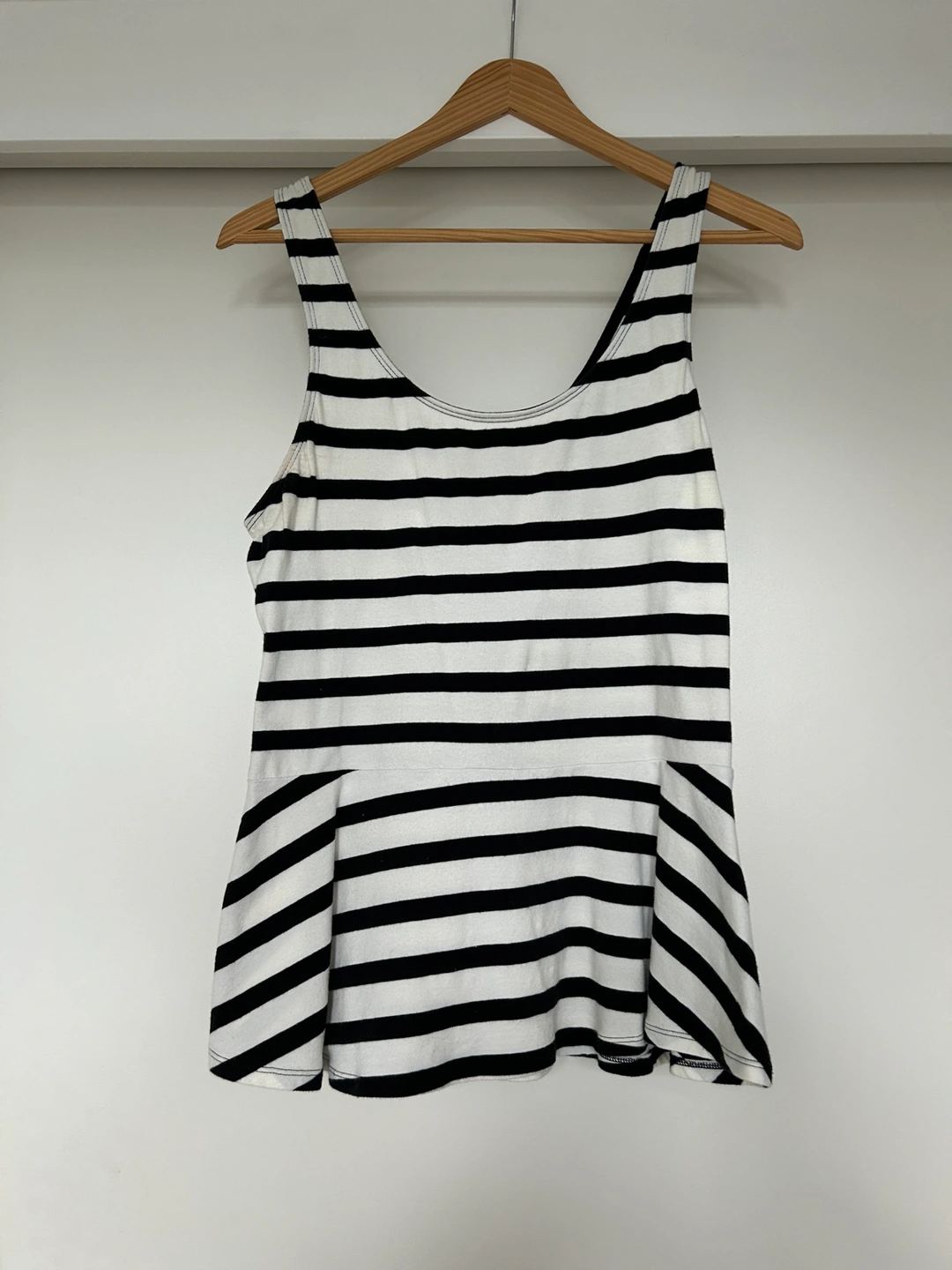 Black and white striped peplum tank top with a flowy bottom. Size Medium. Super cute on and very flattering! For pickup Feel free to message with any questions!