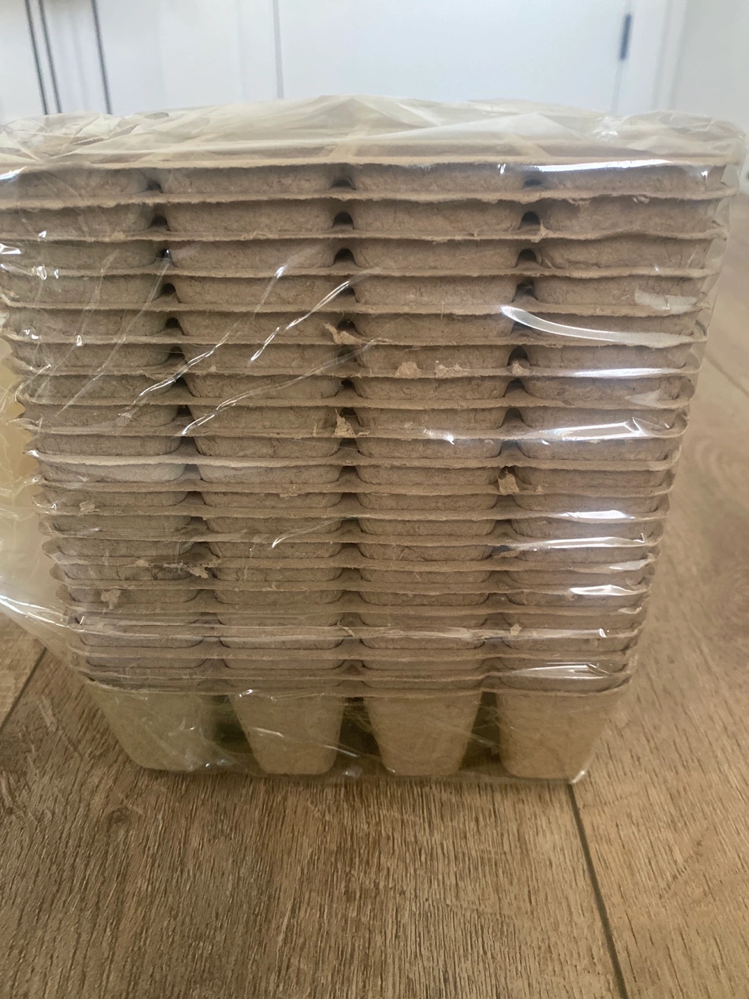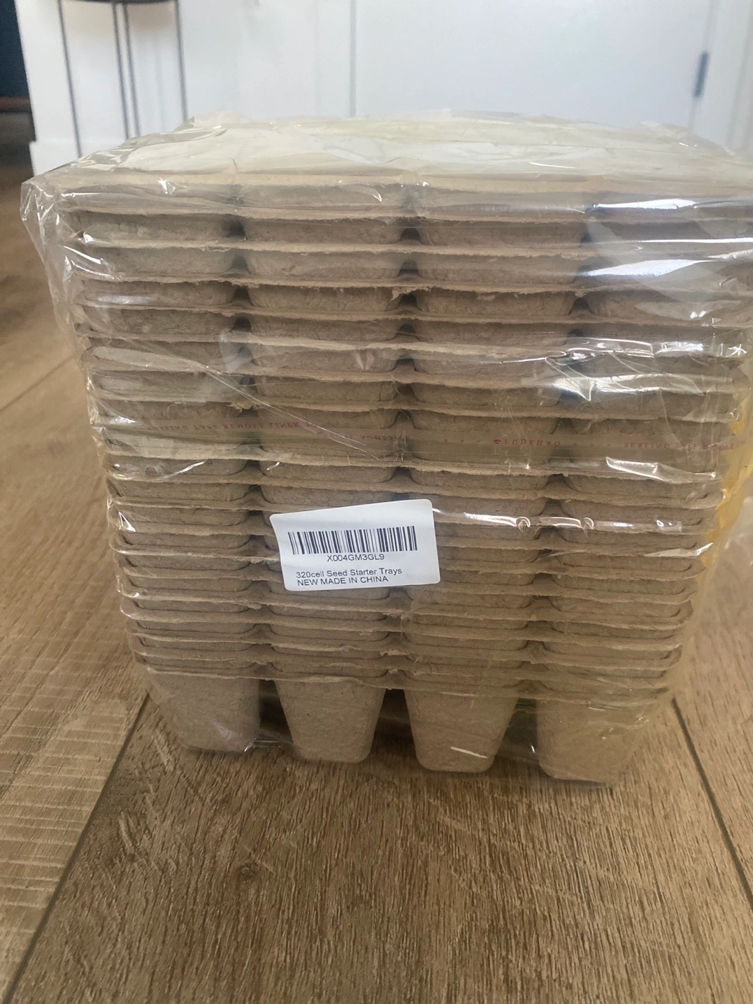 Brand new, unopened package of 320 biodegradable seed starter trays. Perfect for starting seeds indoors. Includes additional supplies. It includes a Seedling Peat Pots with 200 Seedling Labels, 2 Seed Planting Tool and 1 Spray Bottle