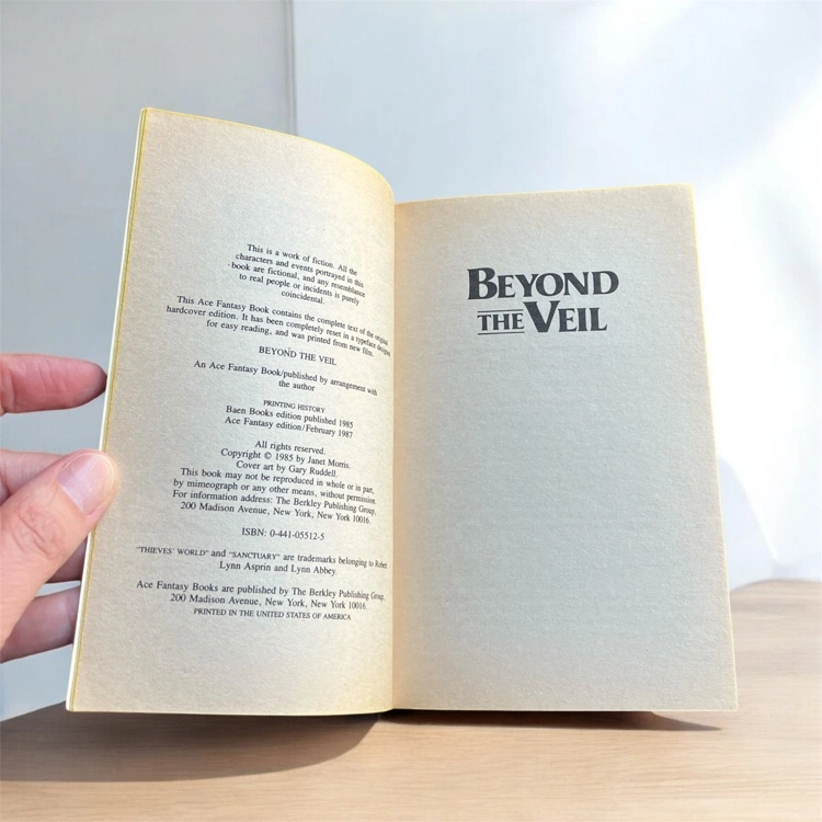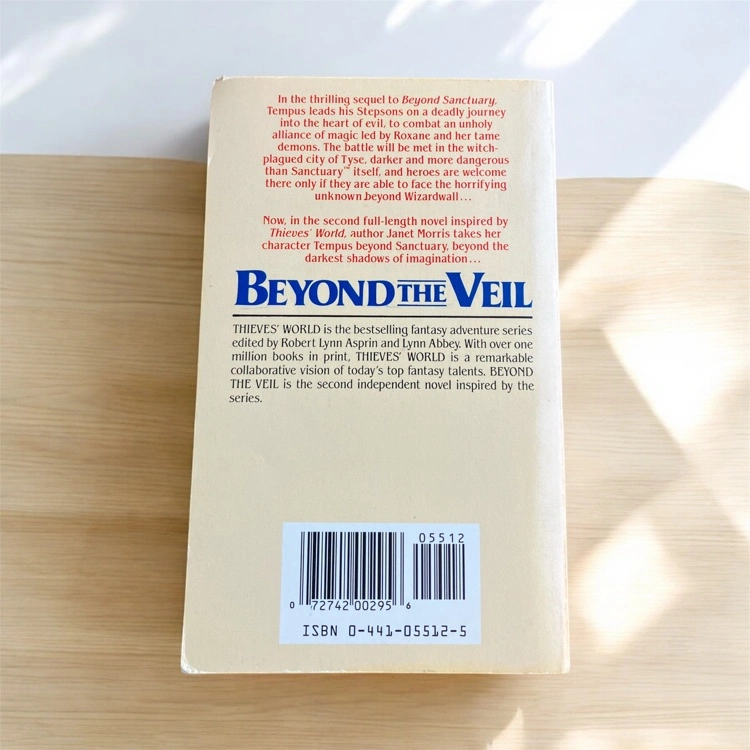 Excellent preowned condition vintage soft cover book. Thieves' World Beyond The Veil is the second novel in the series. ACE Fantasy 1987 written by Janet Morris Normal wear and there is some pen markings on the first page of the book and a black mark on the bottom (see pictures). The book is in excellent condition considering it has been in circulation for over 35 years. Tempus, warrior-servant to the fickle god of storms and war, and his mercenary soldiers are forced into an alliance with Cimi the Mage Killer, Askalon the Lord of Dreams, and the Rankan Third Commando. I ship using recycled material within my home to reduce waste. The package will be wrapped with care if requested or deliver for a fee