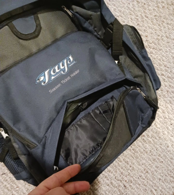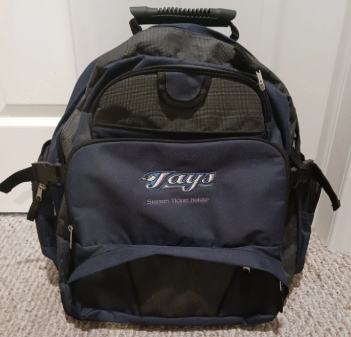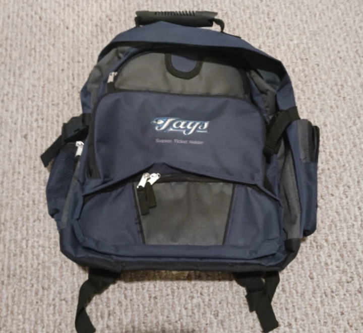 Blue and grey Jays backpack has multiple pockets, used once. Purchased from a friend, daughter didn’t like. Asking what i paid.