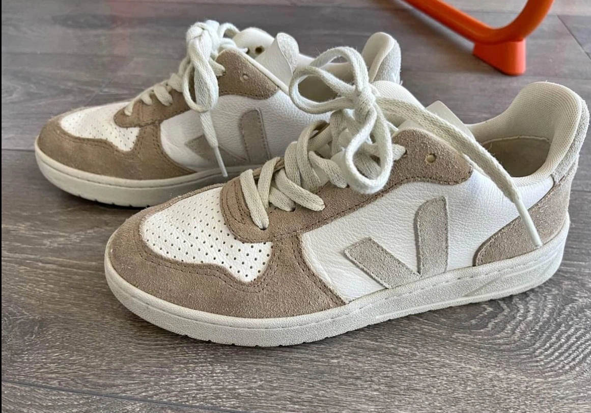 These are a classic white and beige colour combination, with a suede and leather upper. They are a size 38 (EU) or a 7(US).