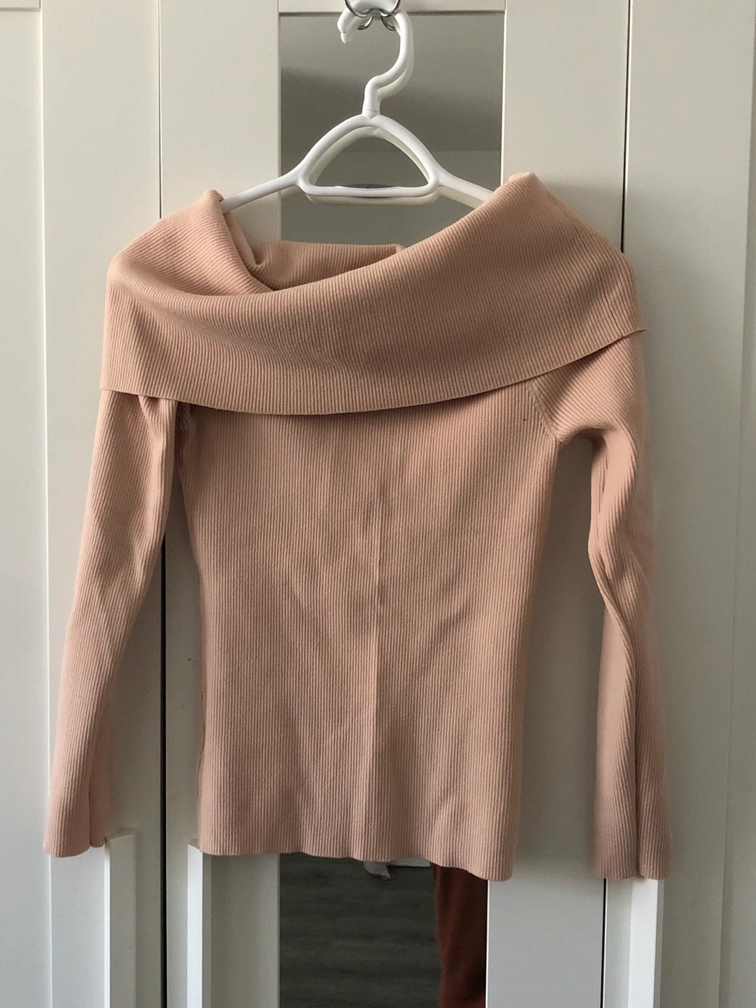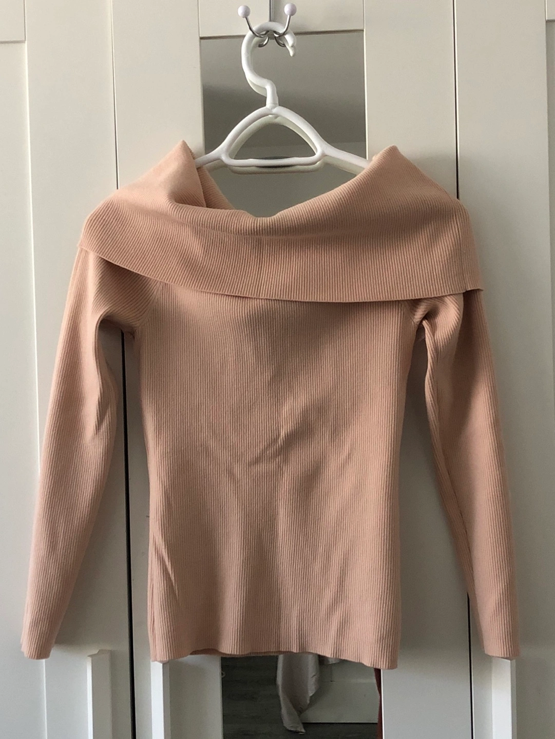 Pink/beige off-the-shoulder sweater with long sleeves. Size Medium.