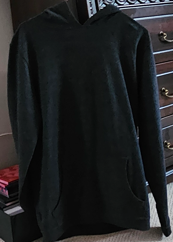 Black hoodie with a pouch pocket. Long sleeves and a hood!
