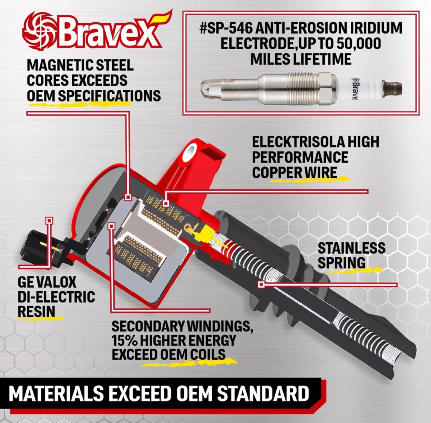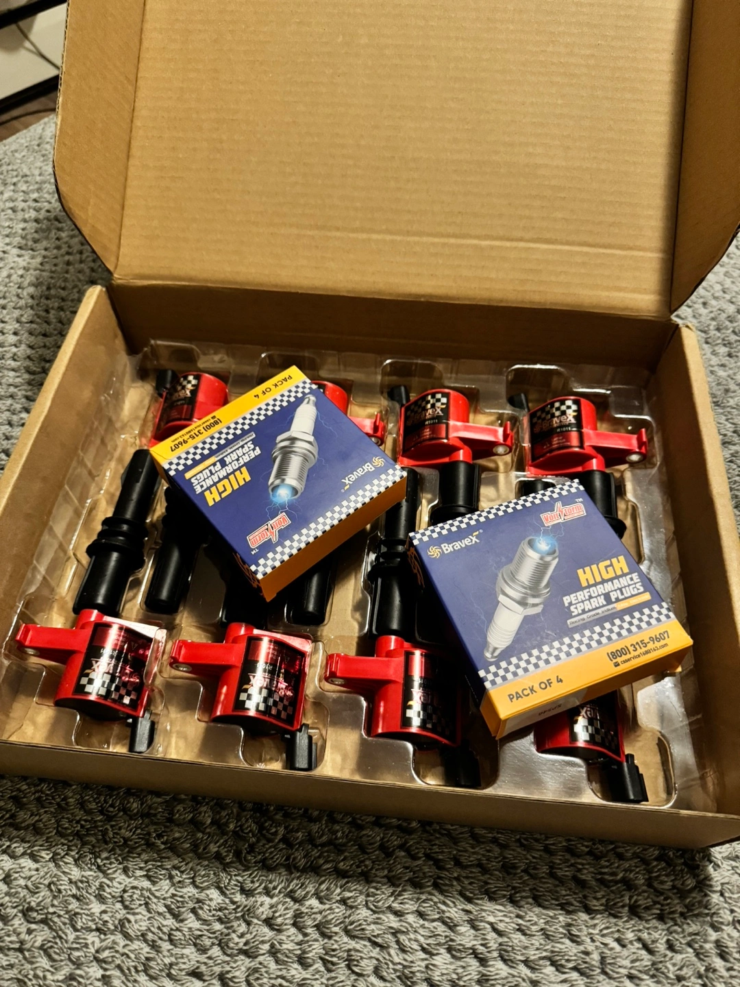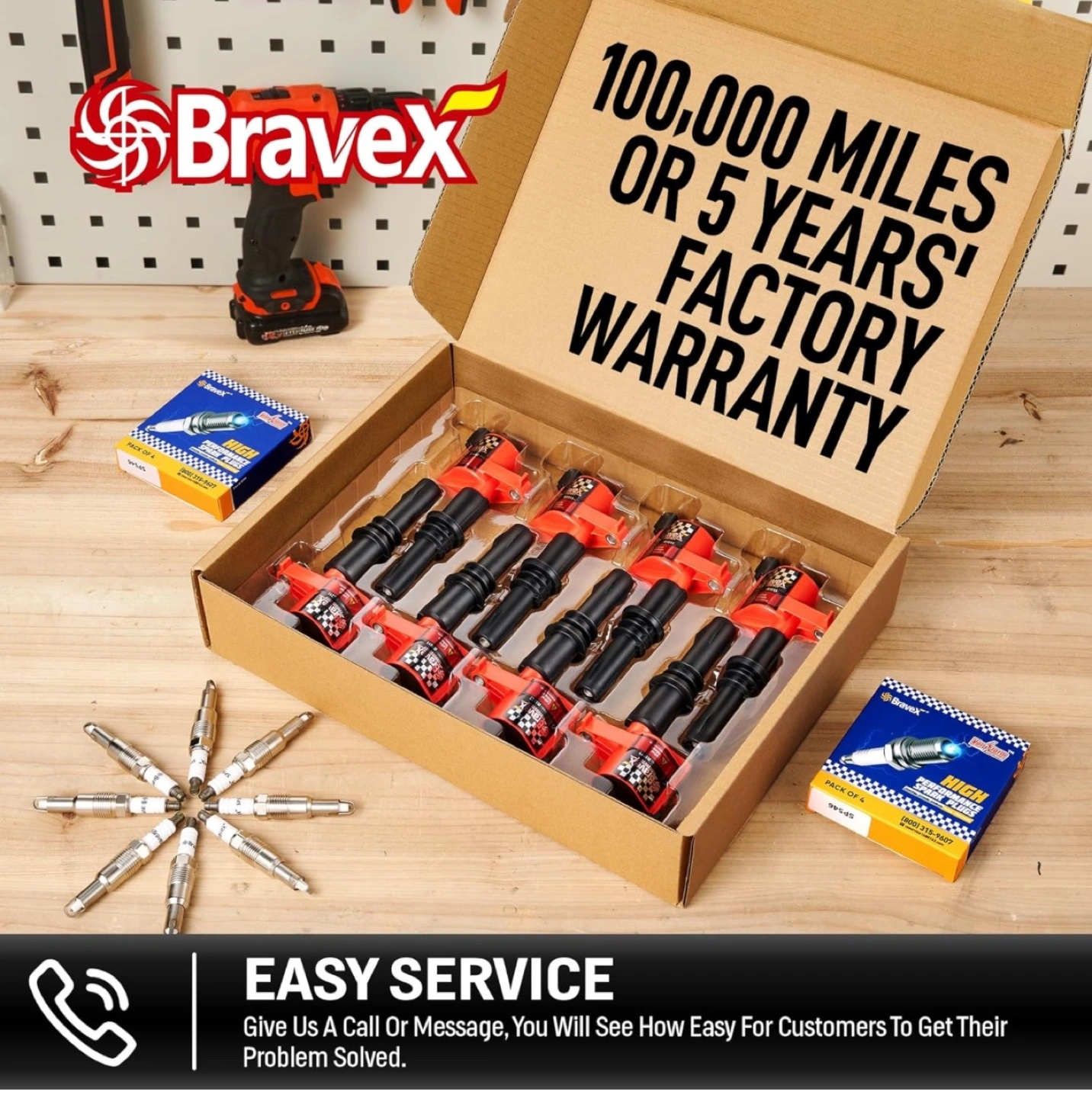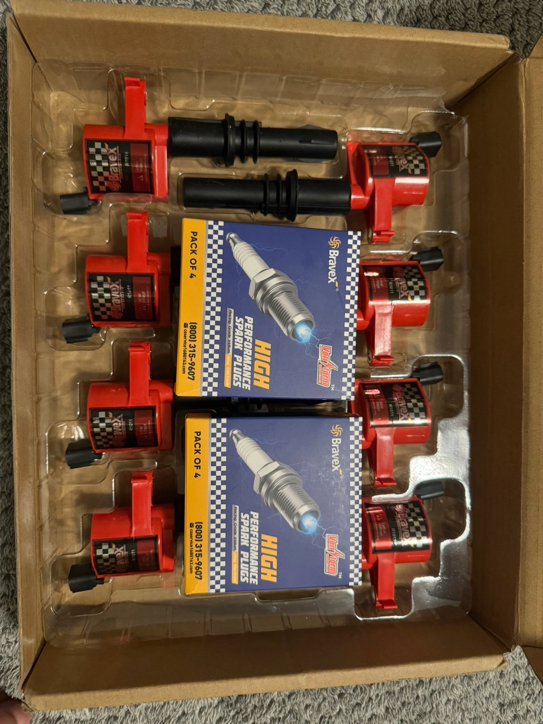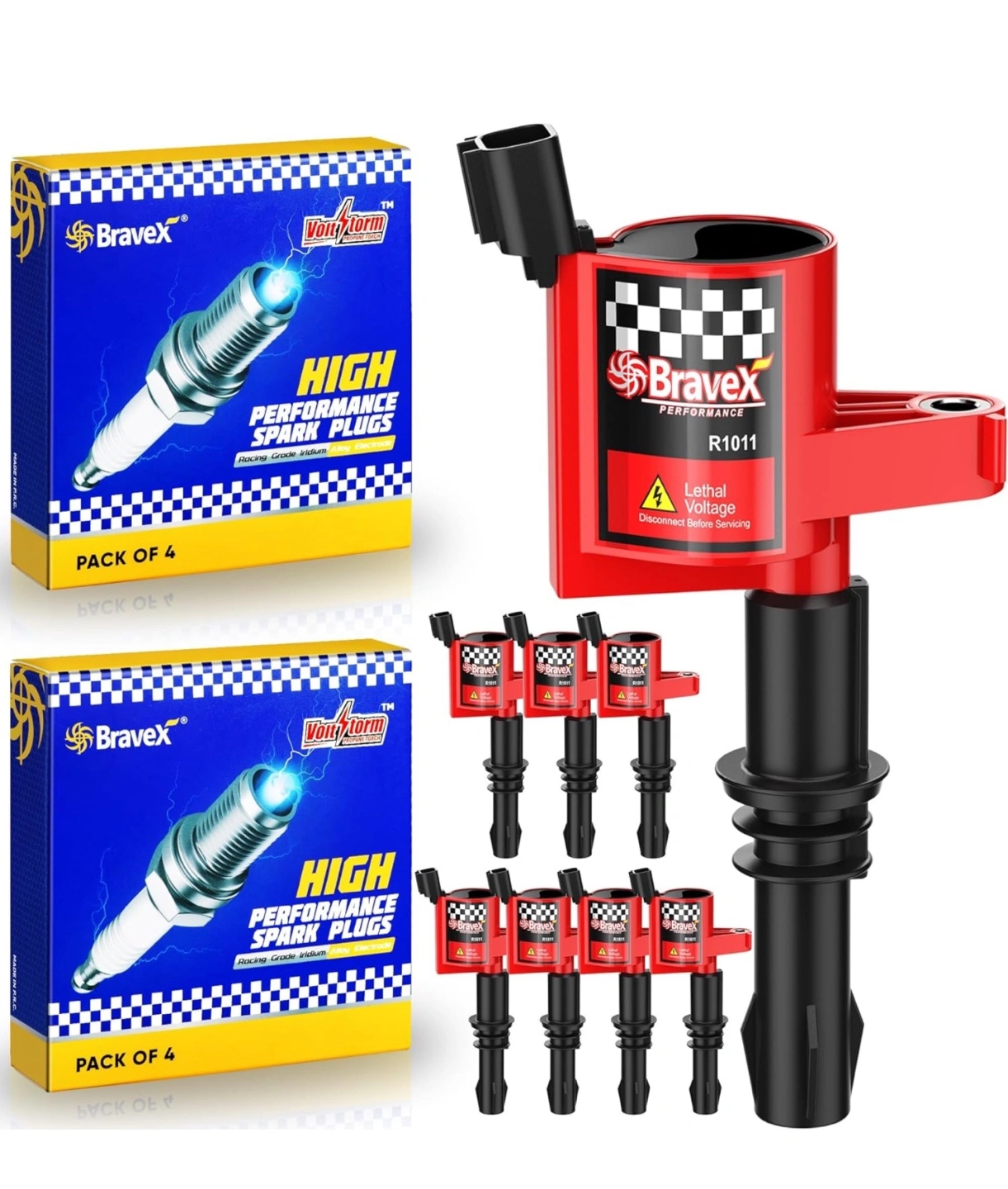 High performance ignition coil pack. Includes eight coils and eight spark plugs. 15% higher energy than OEM coils. 100% compatible with OE coils and SP-546 spark plugs. Product specifications: Manufacturer - HKD Brand - Bravex Model - DG511-SP546 Product Dimensions - 25 x 11 x 11 cm; 1.5 kg Item model number - SP546-R1011 Exterior - Painted Manufacturer part number - SP546-R1011 Item Weight - 1.5 kg For more than 10 years, Bravex have been a trusted name as a performance fuel and ignition system provider. With its extraordinary racing engineering capability and enthusiasm to advanced motor sport technology, Bravex offer a wide range of selection of performance products, including ignition coils, distributors, electric fuel pumps, ignition wire sets. caps, electric winches, ATV axle, go kart clutches. Compatible with: For 2005-2008 Ford Expedition 5.4L V8 For 2004-2008 Ford F150 5.4L V8 For 2005-2008 Ford F250 Super Duty 5.4L V8 For 2005-2008 Ford F350 Super Duty 5.4L V8 For 2006-2008 Lincoln Mark LT 5.4L V8 For 2005-2008 Lincoln Navigator 5.4L V8