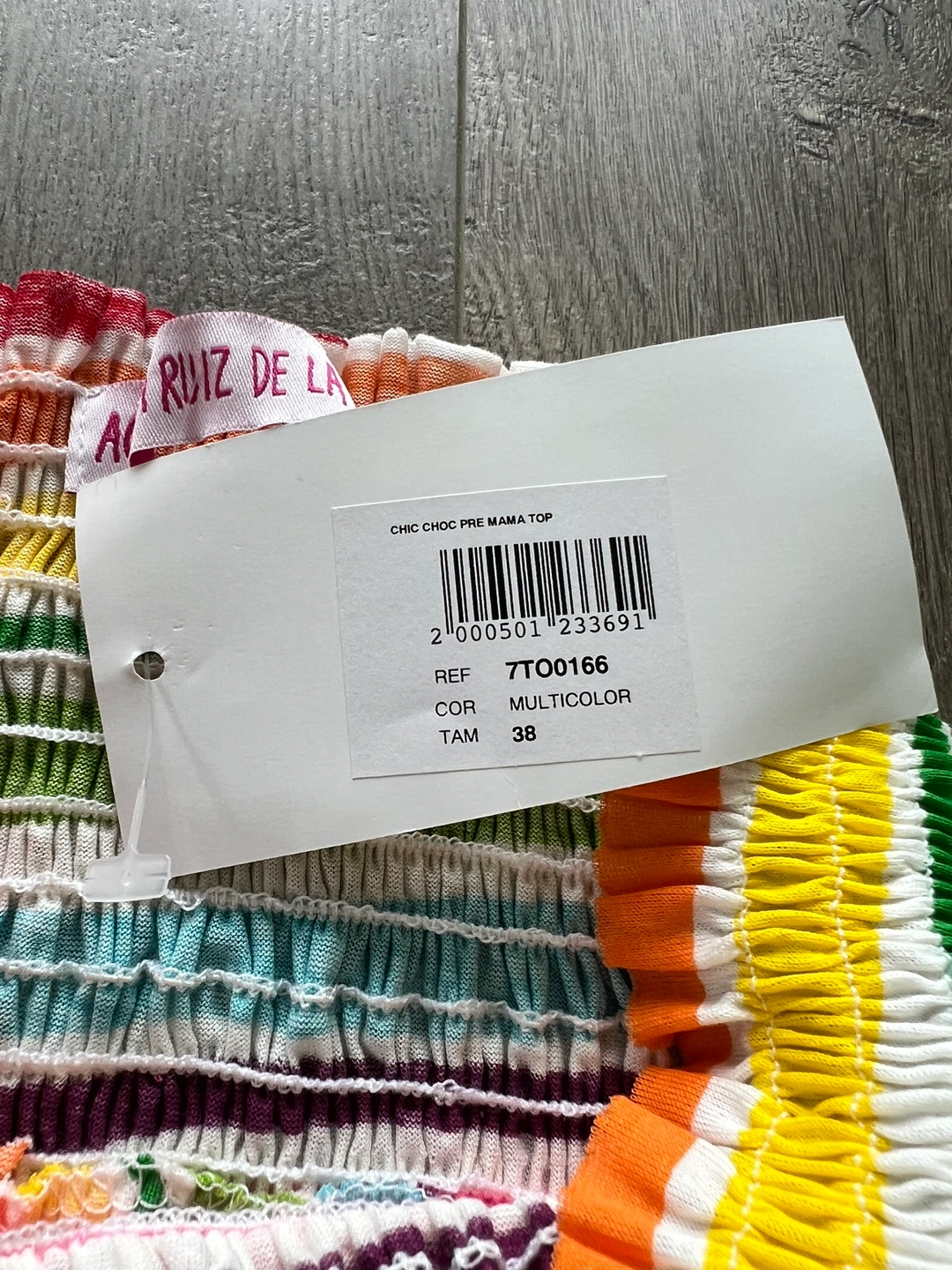 Rainbow stripe maternity shirt, European size 38. Strapless, elastic at top and bottom.