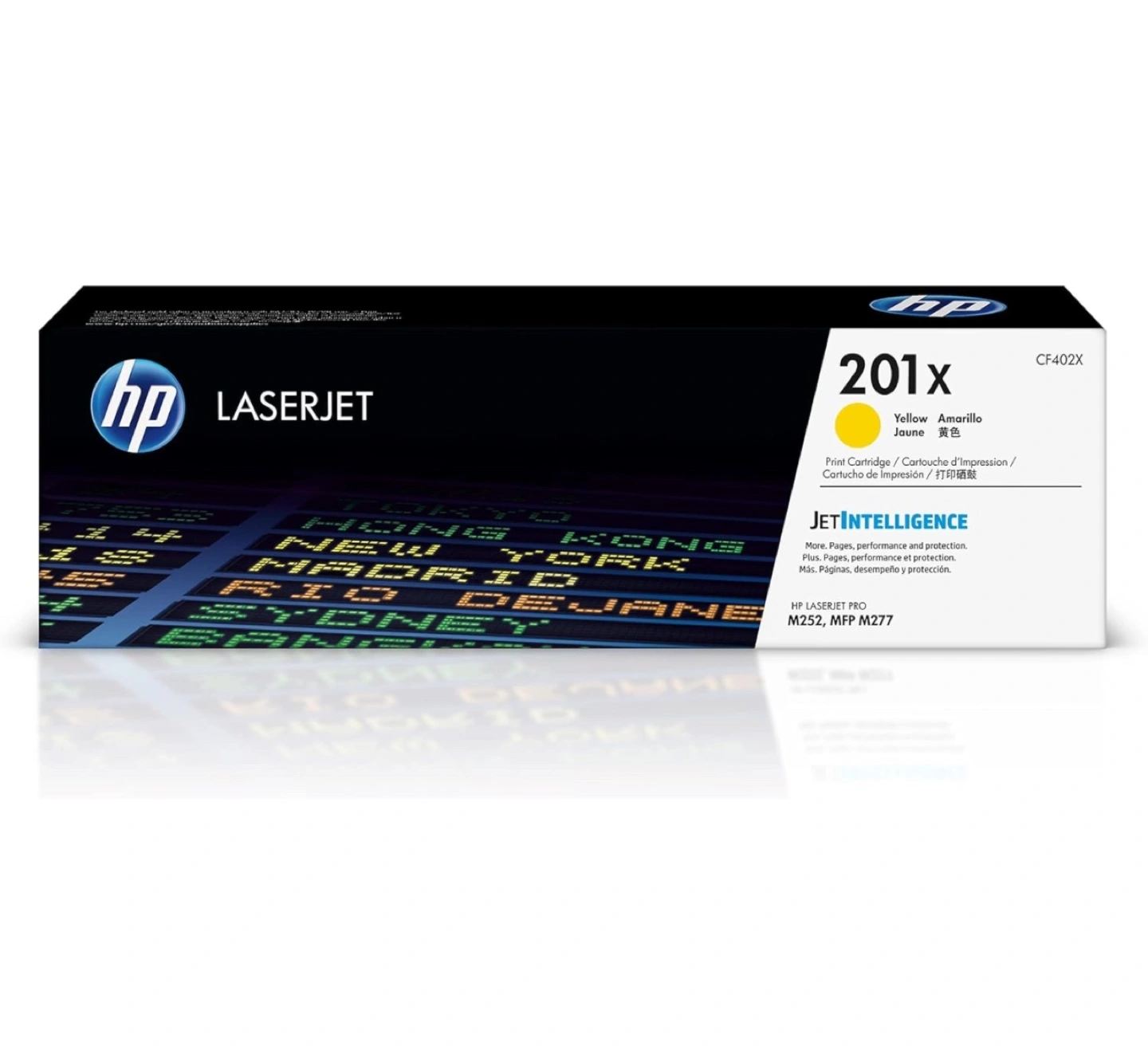 Yellow toner cartridge for HP LaserJet Pro M252, MFP M277 printers. JetIntelligence technology provides consistent, high-quality prints. Brand - HP Colour - Yellow Item weight - 531 g Included components - Laser Printer Toner Cartridge Compatible devices - HP Color LaserJet Pro M252/M274/M277 Compatibility options - Original Cartridge Compatible with the following HP printers: HP Color LaserJet Pro M252dw, MFP M277dw, MFP M277n Original HP Cartridges are designed to work first time, every time CF402X cartridge(s) average yield: 2300 pages Colour: yellow Get more value for money and change your cartridges less frequently with high yield cartridges Original HP Toner Cartridges produce an average of 71% more usable pages than non-HP cartridges Save up to 25% with Original HP High Yield Toner Cartridges
