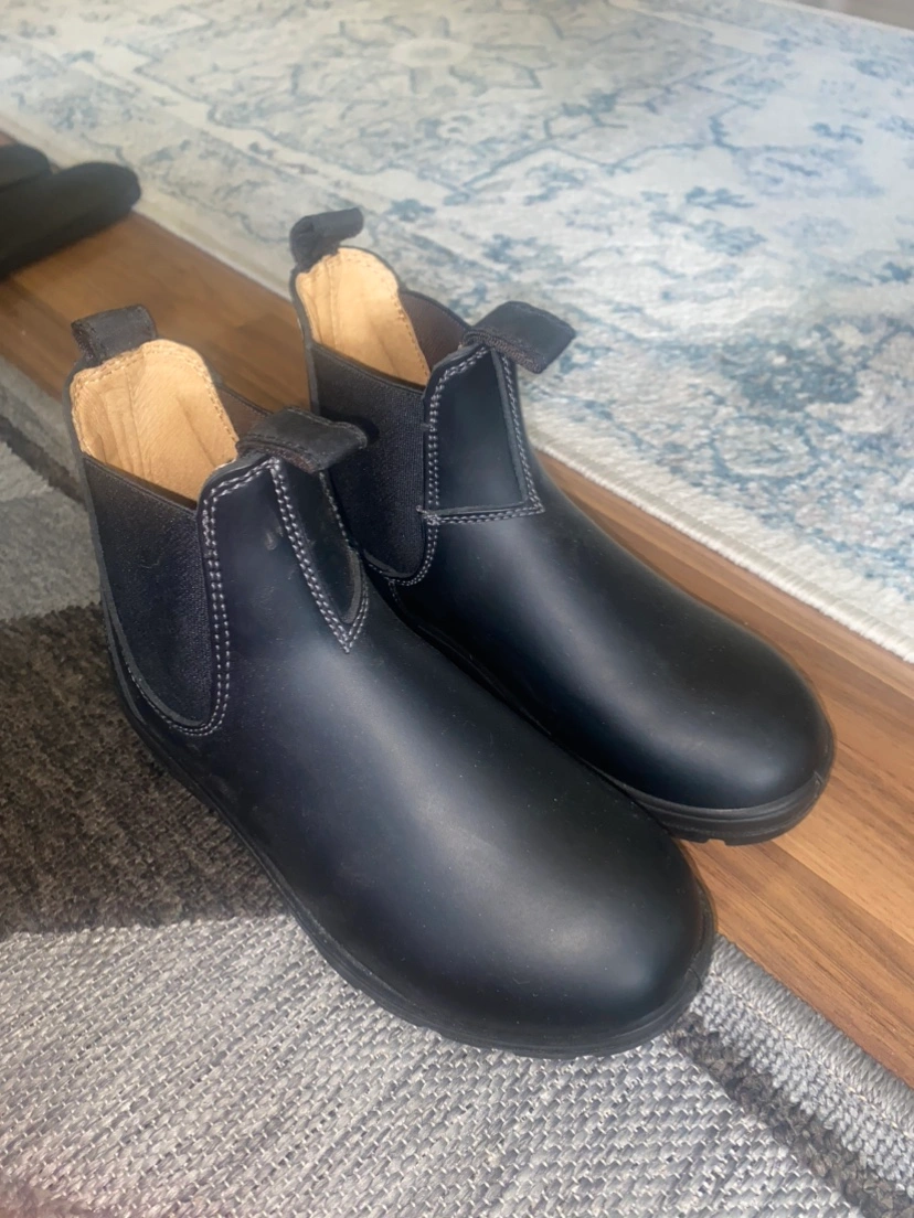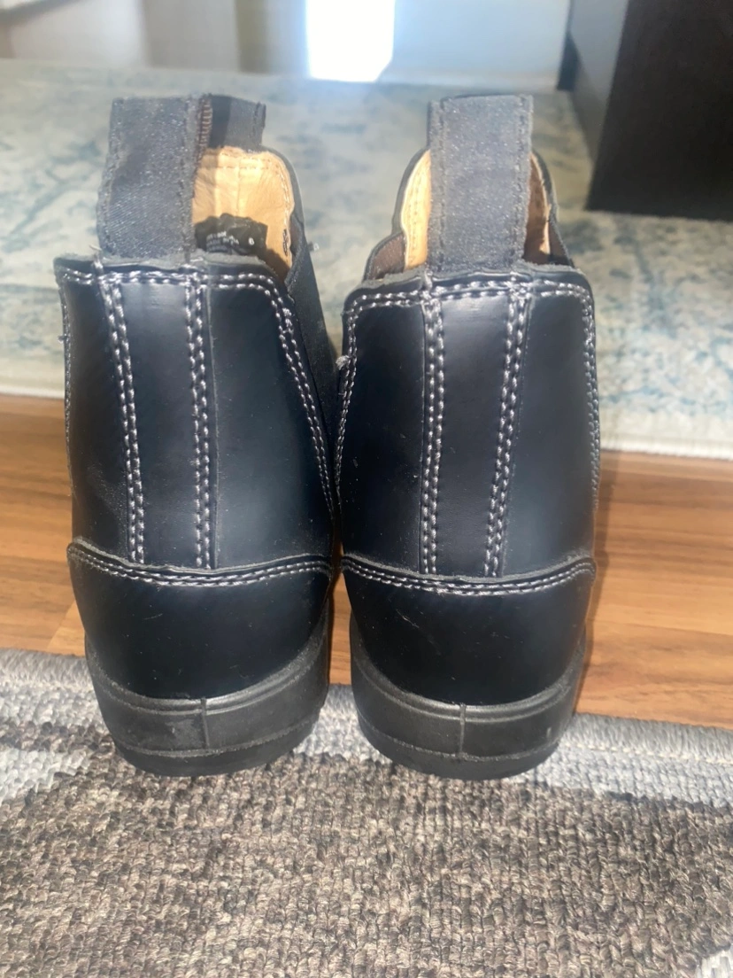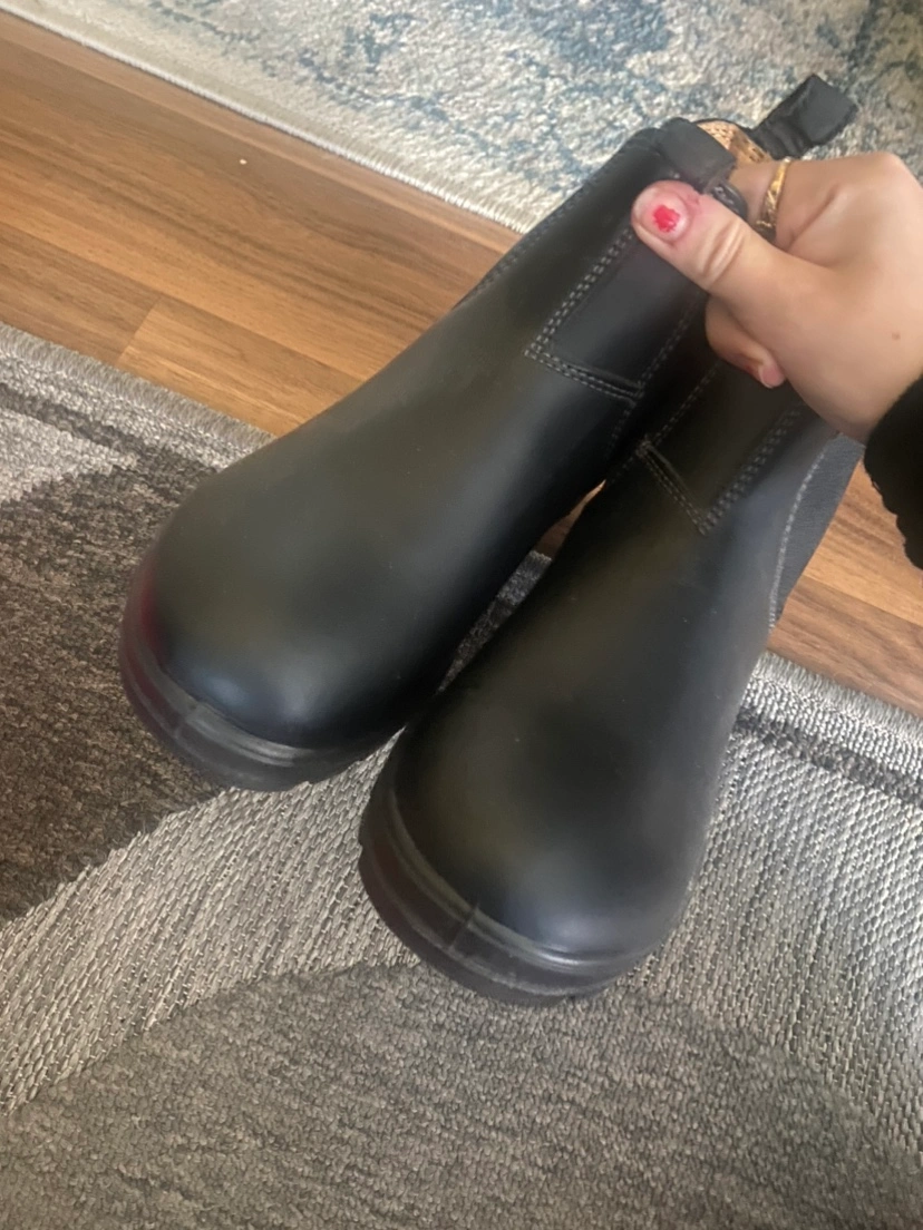 Black Ankle Boots tight fitting, has stretch to put on. I’m a size 6 but this feels like a size 5. water resistant boots Smoke Free & Pet Free Household. Pick Up Only, No Delivery. Cash Only. Only reach out if interested in purchasing the item. Do not waste my time.