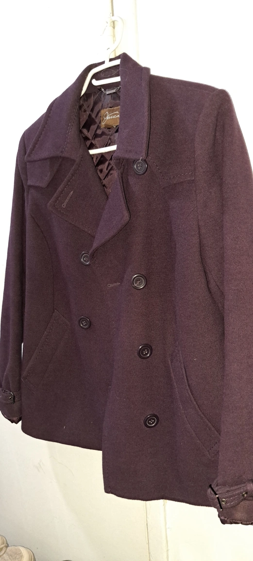 63 % polyester 33 % viscose. machine washable cold....drip dry .. time to find a new home...got it during my Sears days practically worn maybe once only not my size..I'm a L now