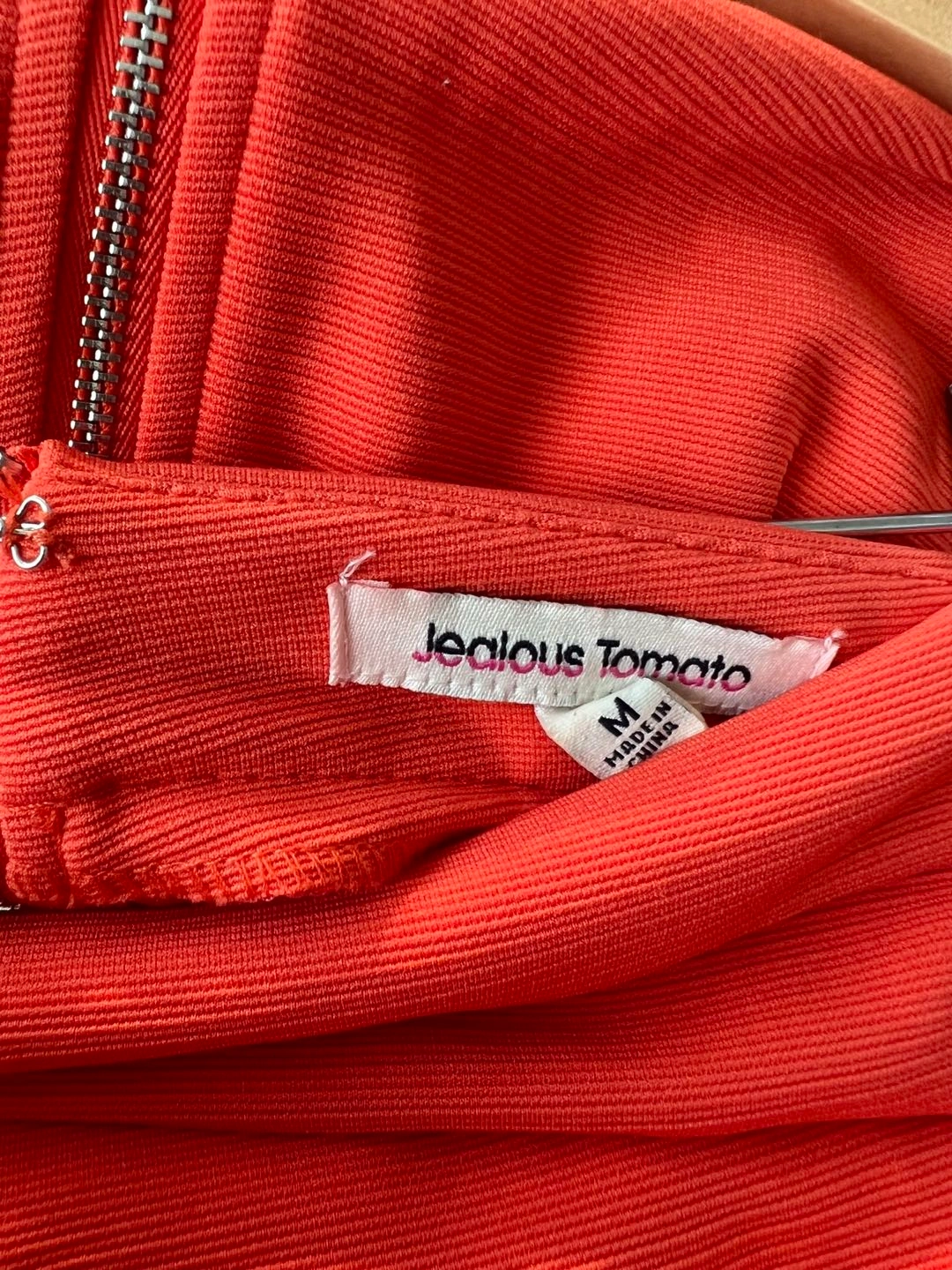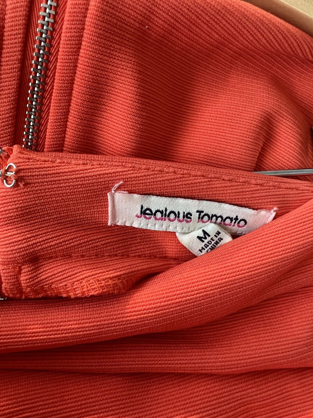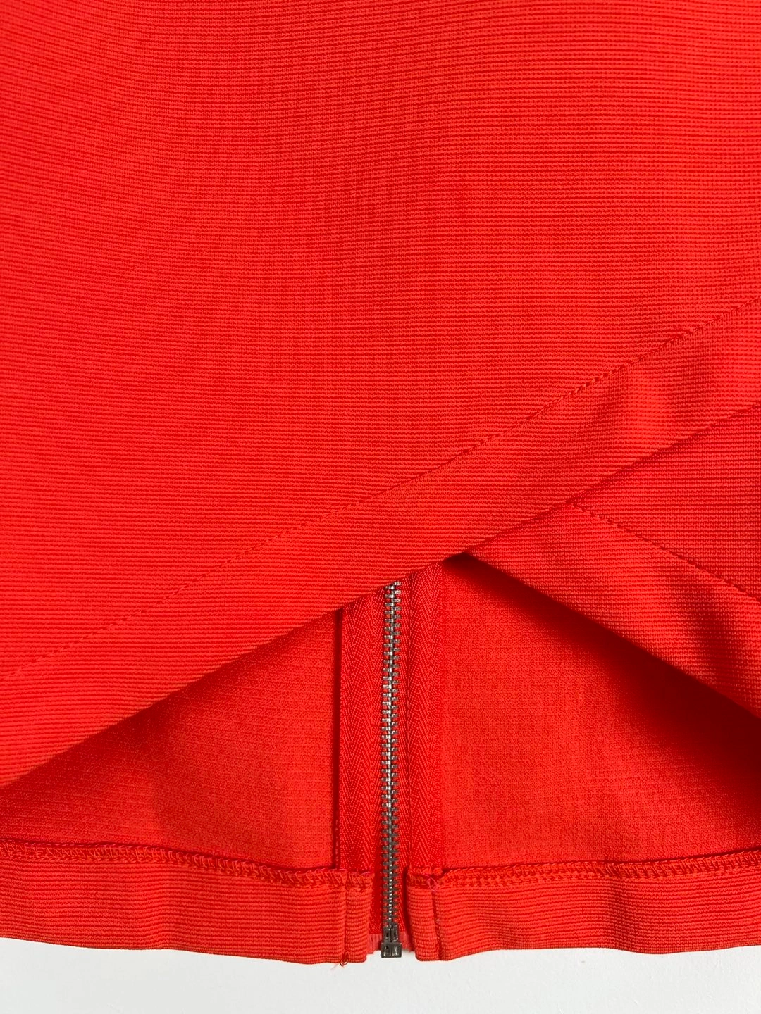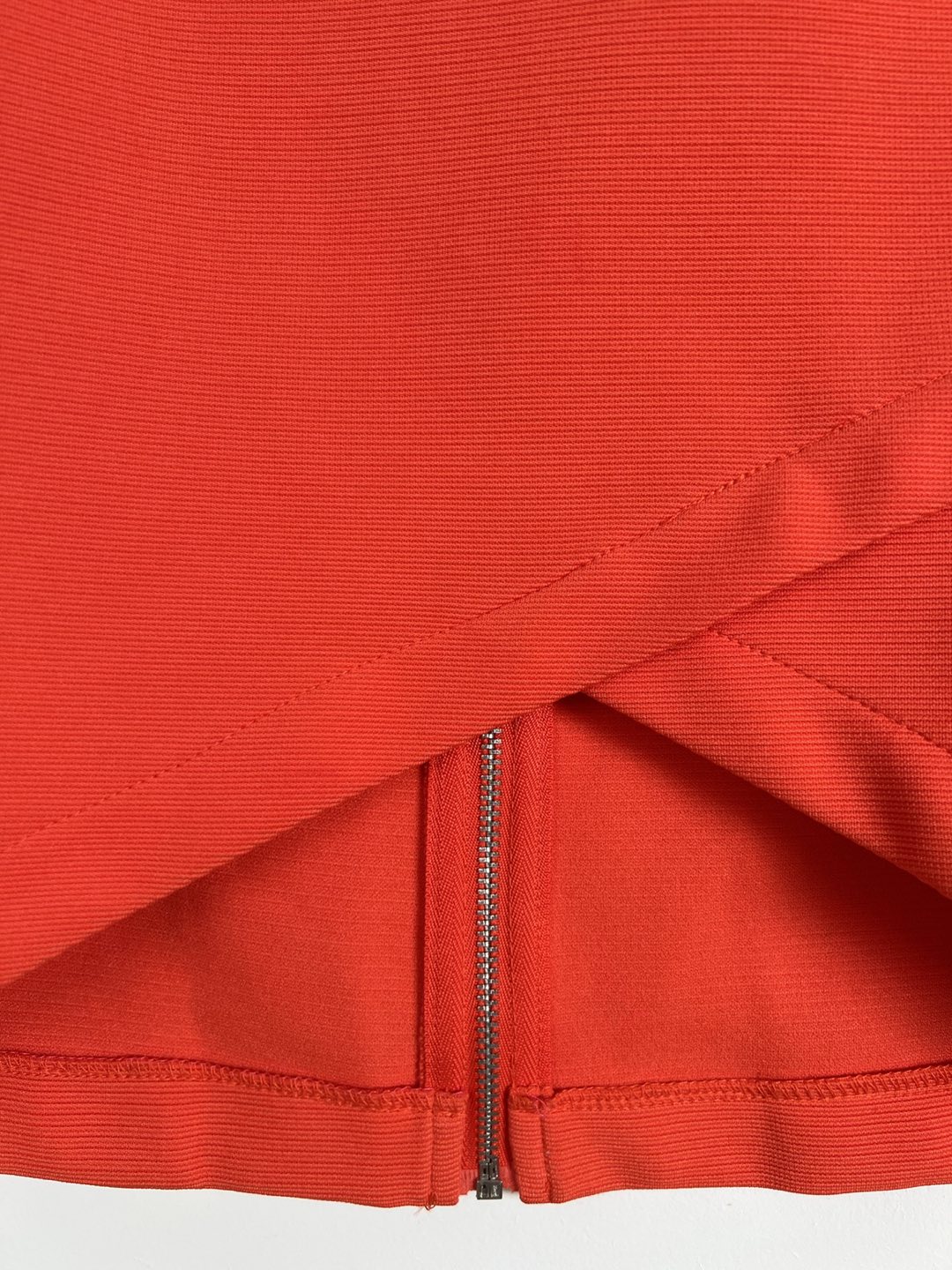 Deep orange colour Jealous Tomato pencil skirt, with crossover design in front and gorgeous full zipper in the back. It’s in very good condition.