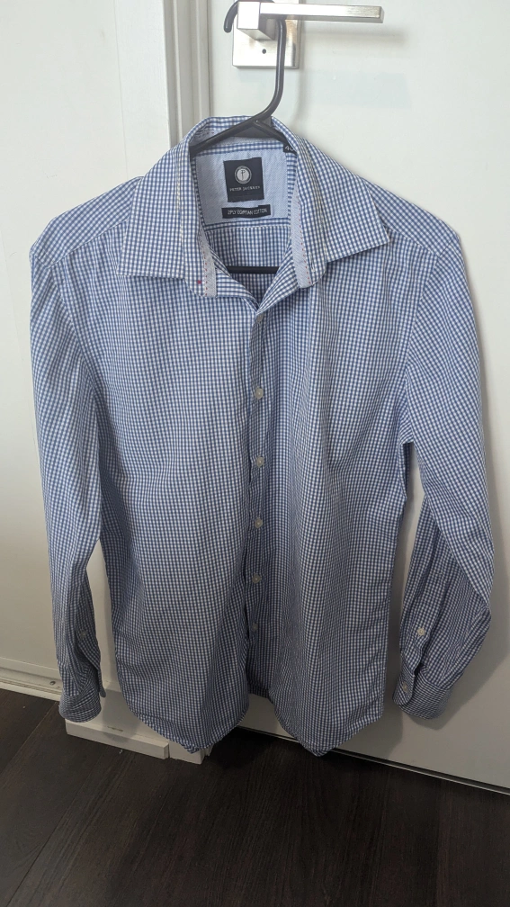 Blue and white gingham long-sleeved dress shirt. 2 ply Egyptian cotton. **Bundle offer available** buy 3 get 15% off