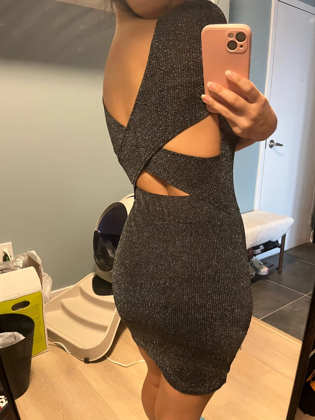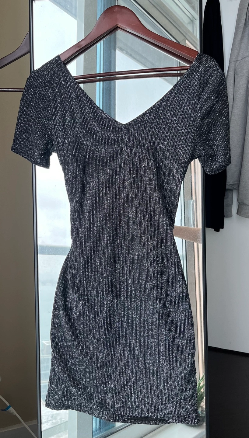 Sparkly body con dress with criss cross back, fits size S-XS. If you need more details, please ask :) Cash & pick up only