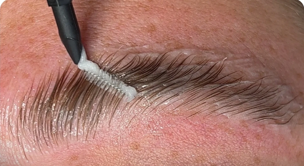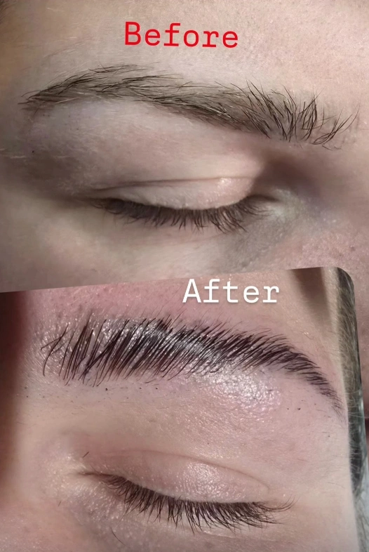 Brow lamination.With brown perm, we brush the hairs upwards and shape them. They stay in place for up to 6 weeks.