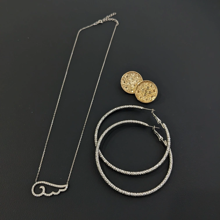 $3 eachπ Silver hoop earrings Gold studs look earrings Silver wing necklace Earrings are almost new Wing necklace is in a good condition Pickup only ππΌ