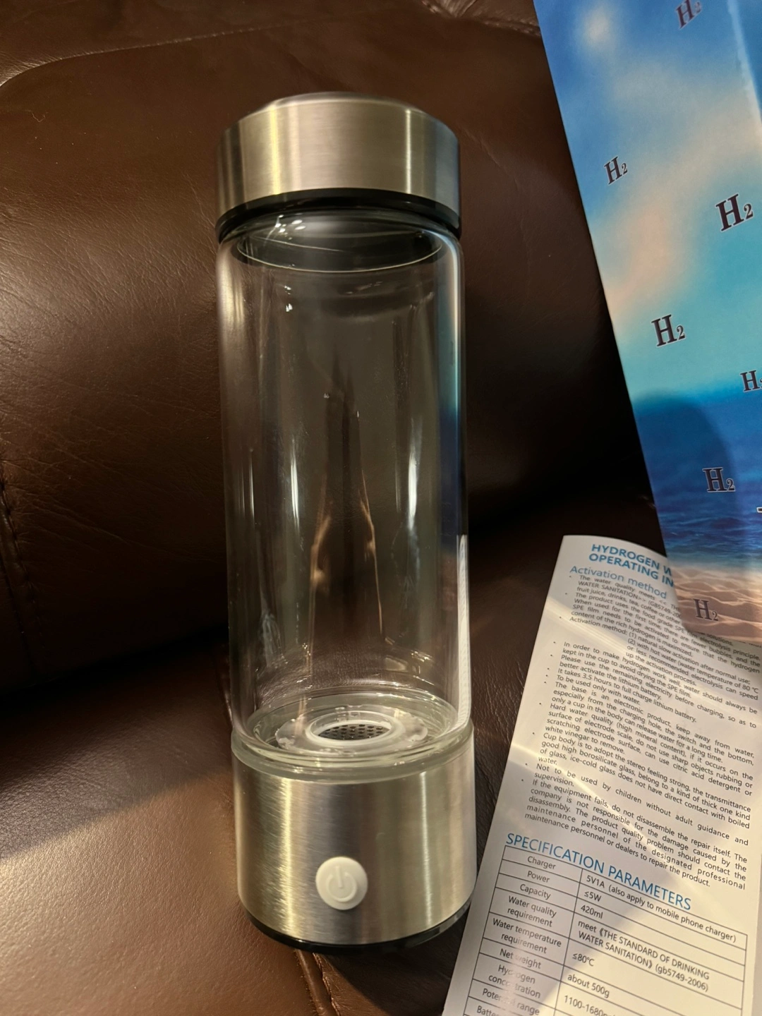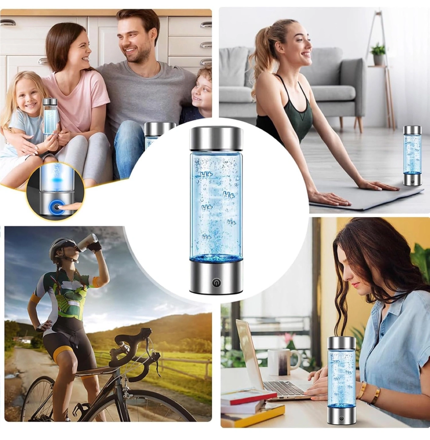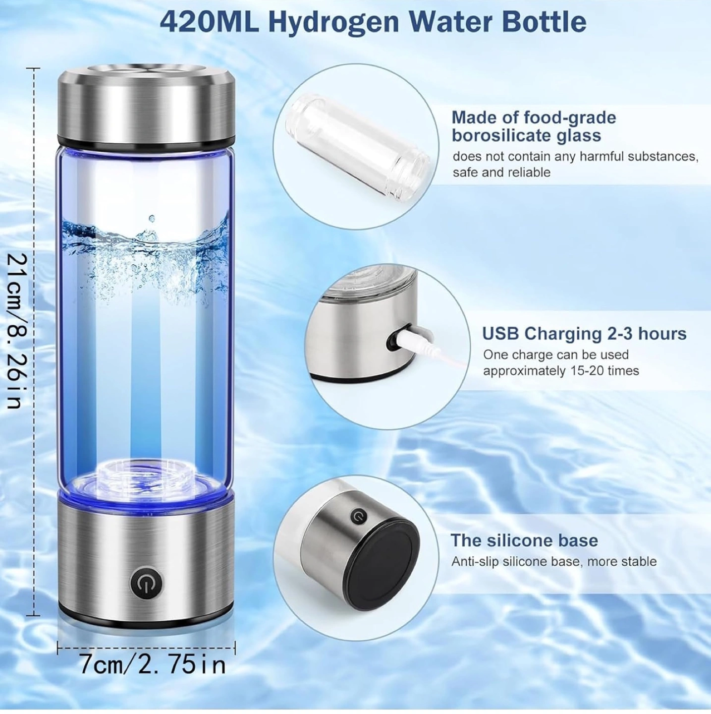 Hydrogen rich water cup with USB charging. Made of food-grade borosilicate glass, safe and reliable. Anti-slip silicone base. One charge can be used 15-20 times. Hydrogen Water Bottle, 2024 New Portable Hydrogen Water Bottle Generator, Hydrogen Water Ionizer Machine Improving Water Quality Quickly, Perfect for Daily Drinking, Home Travel Office Fitness