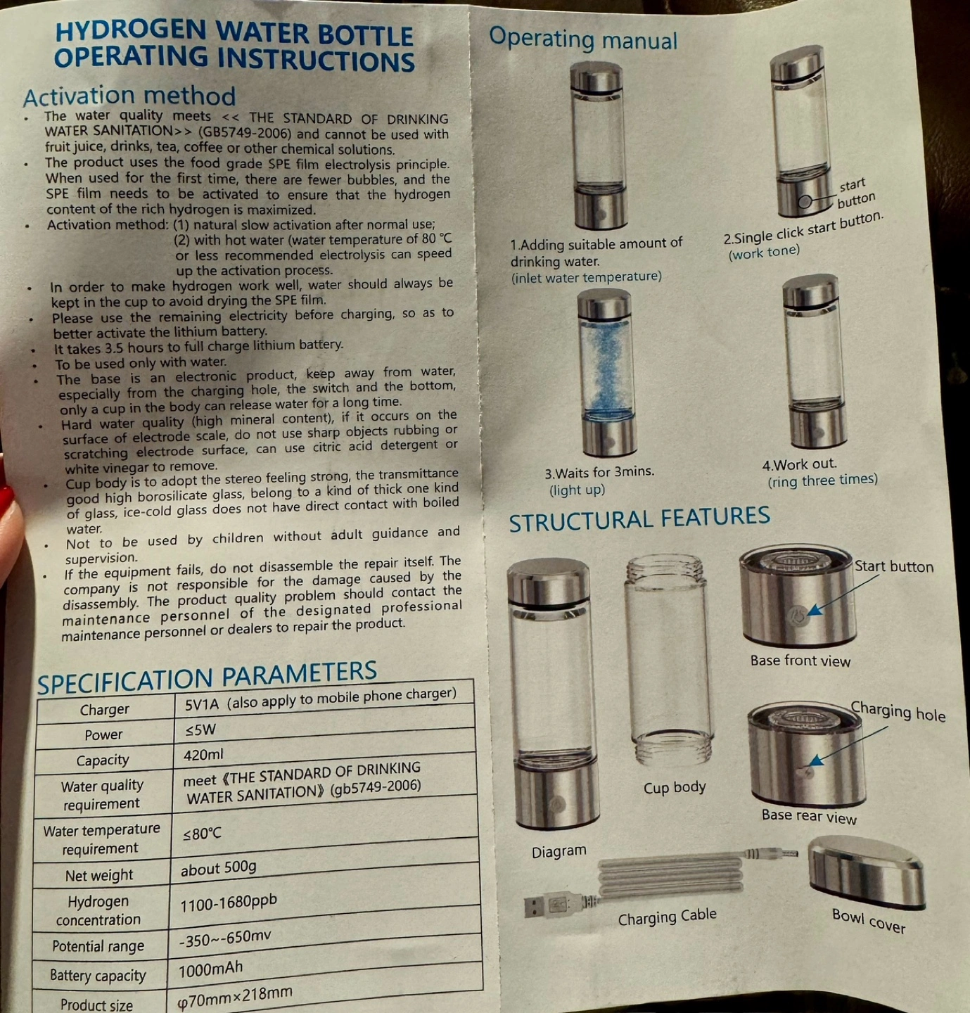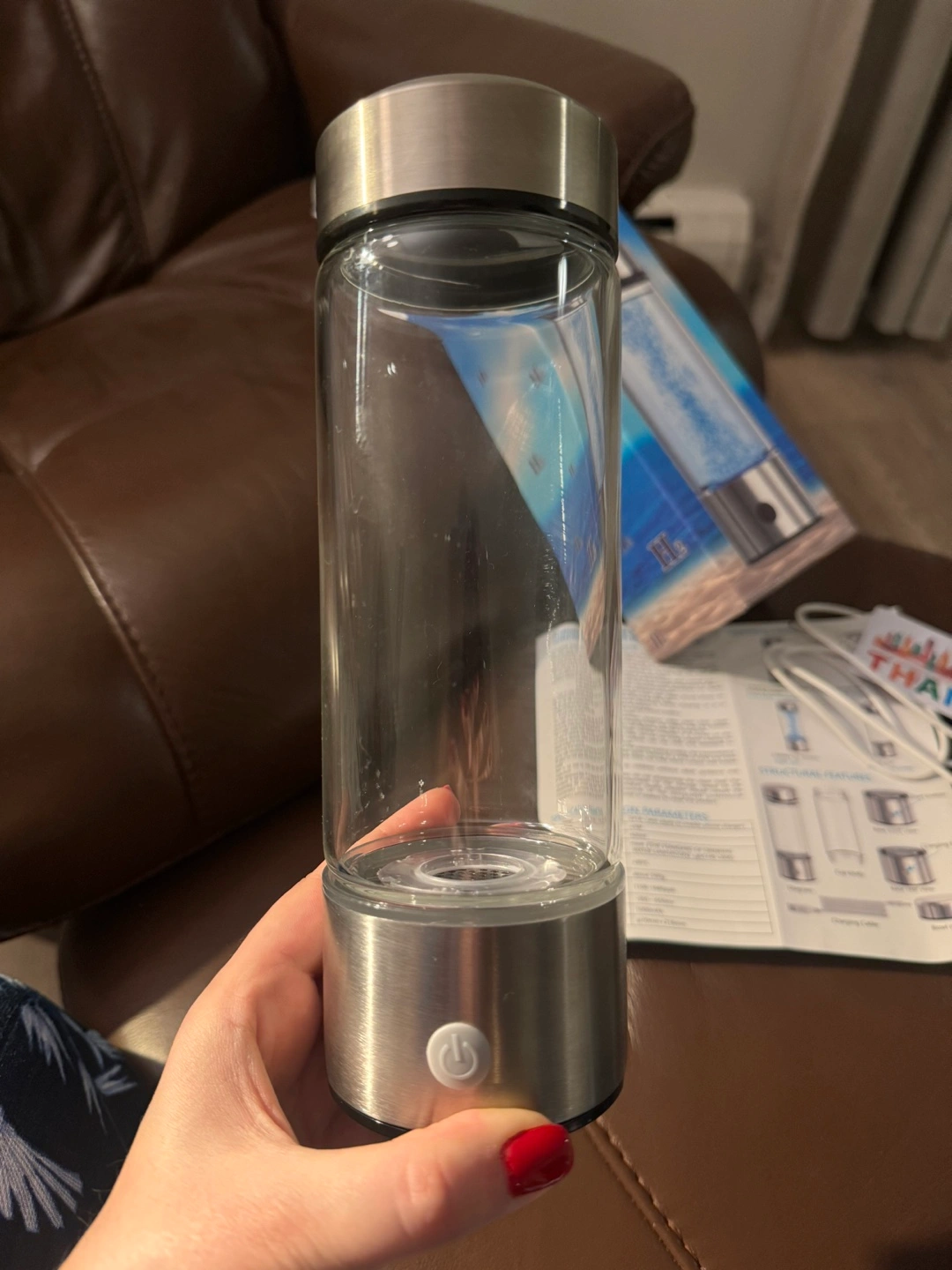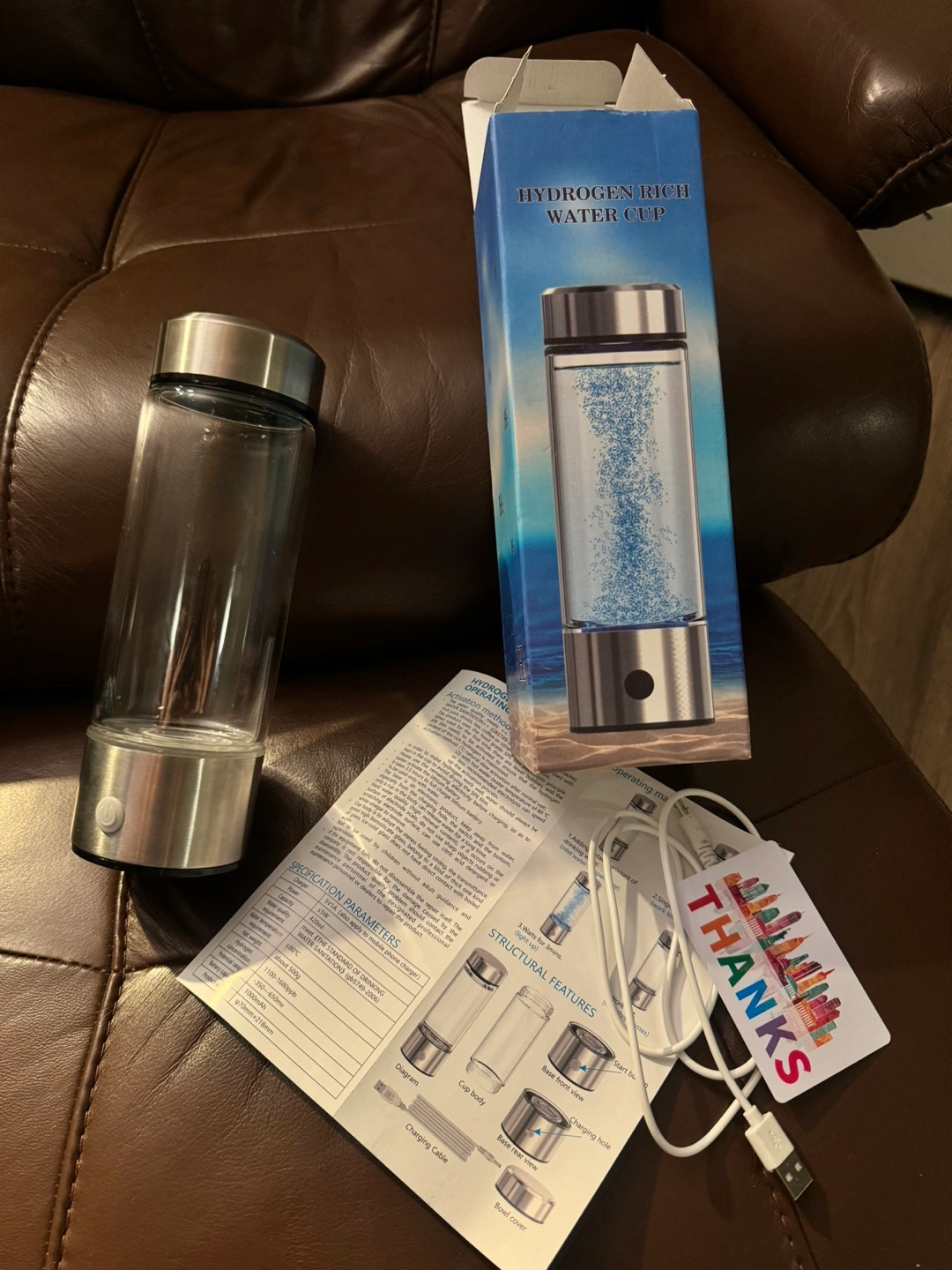Hydrogen rich water cup with USB charging. Made of food-grade borosilicate glass, safe and reliable. Anti-slip silicone base. One charge can be used 15-20 times. Hydrogen Water Bottle, 2024 New Portable Hydrogen Water Bottle Generator, Hydrogen Water Ionizer Machine Improving Water Quality Quickly, Perfect for Daily Drinking, Home Travel Office Fitness