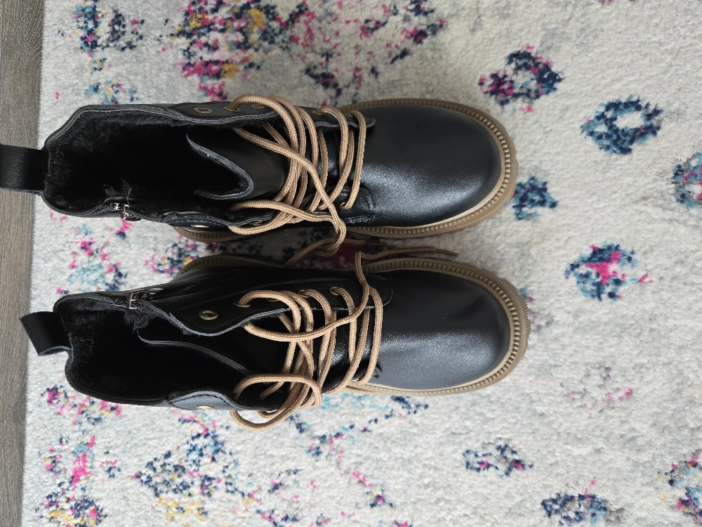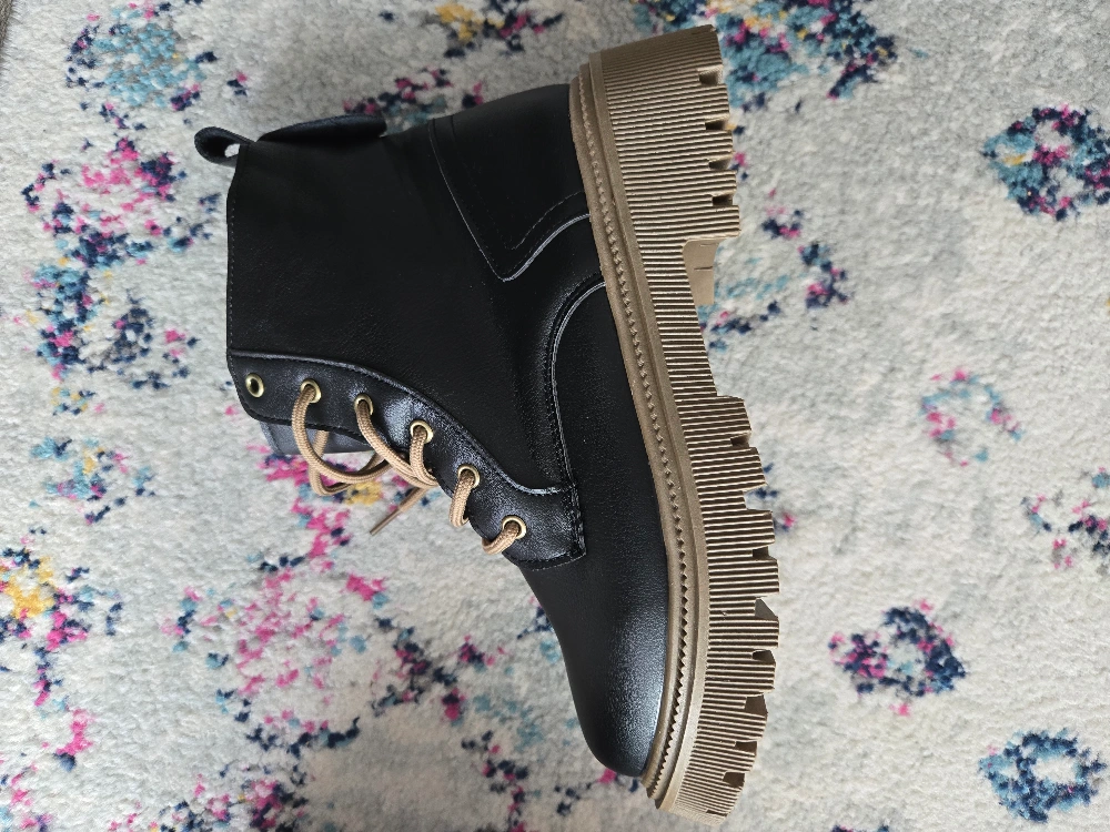 Black leather platform boots with brown laces. Size 38.