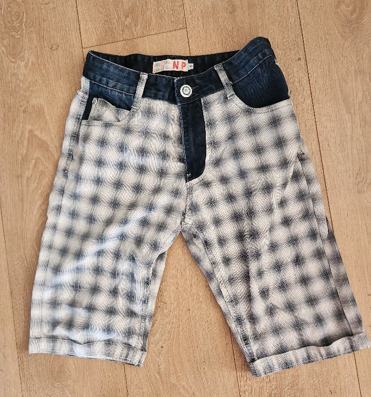 Plaid shorts with denim trim front and back. Size small. * Cash Only * * No E-transfers * * Pickup Only * * Serious Offers Only *