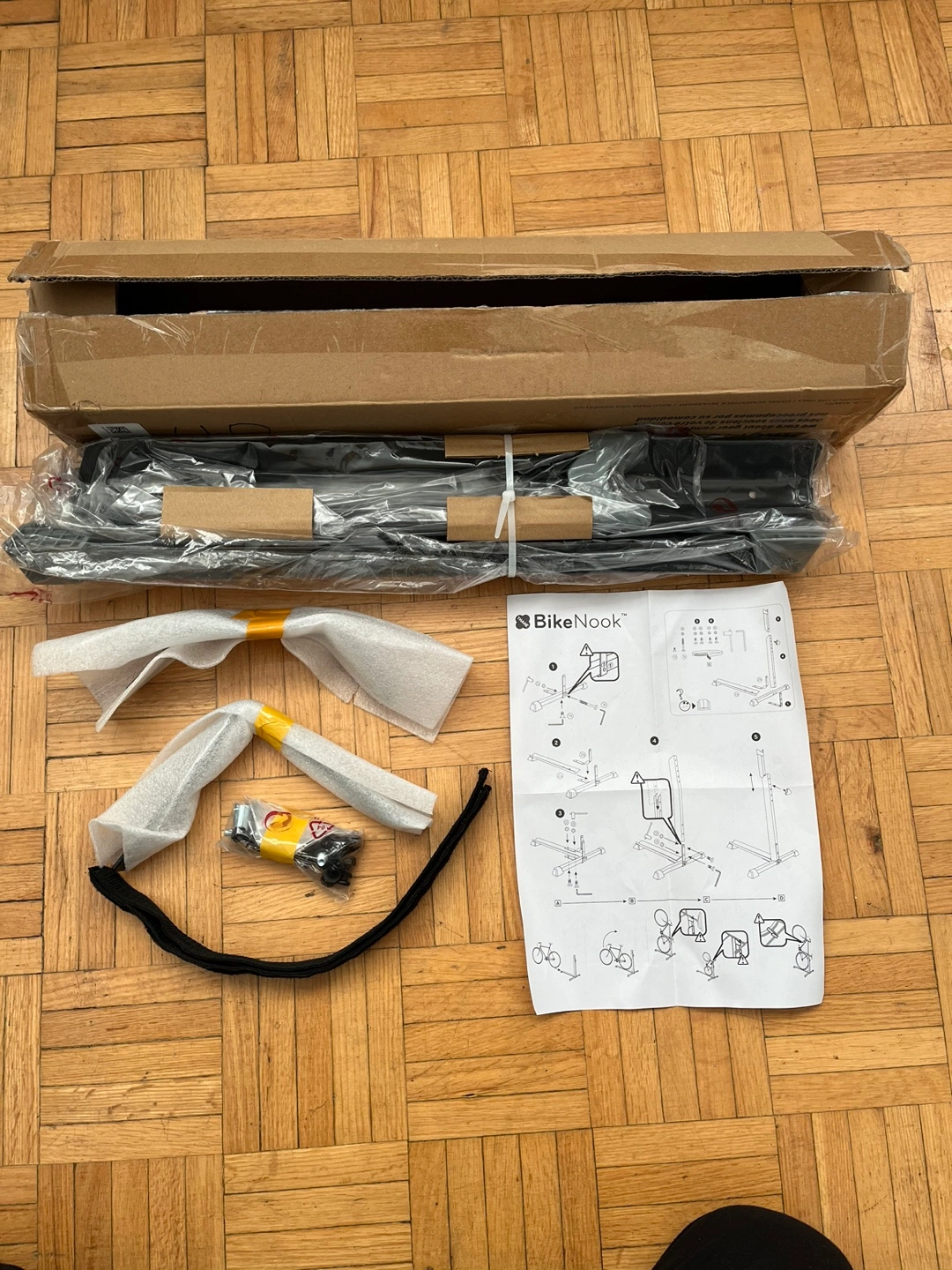Bike Nook wall mount bike rack, new in box. Includes all mounting hardware and instructions.