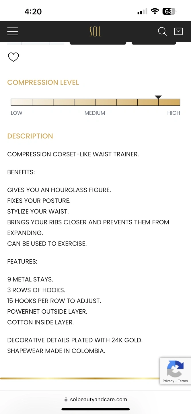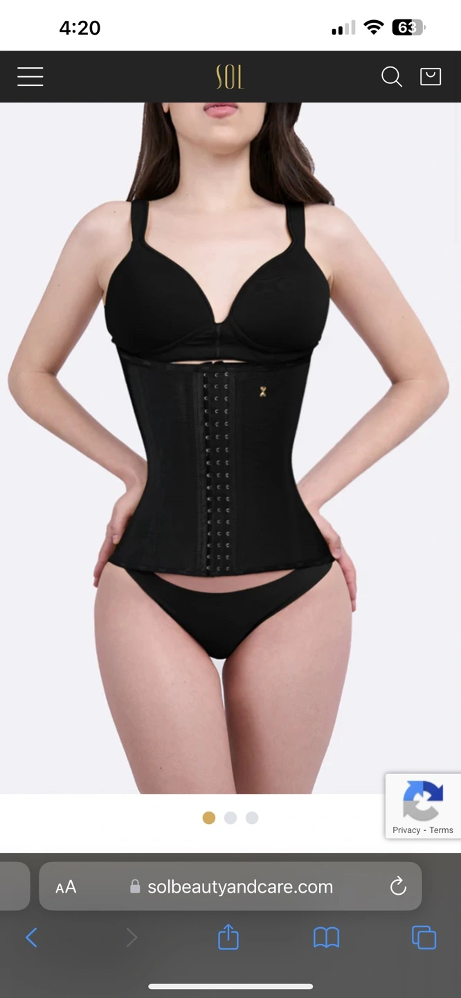 Black corset with 9 metal stays, 3 rows of hooks, and a powernet outer layer. It has a cotton inner layer and decorative details plated with 24K gold. Mexican brand: Sol beauty and care by Sol Leon. Size XS Pick up downtown only.