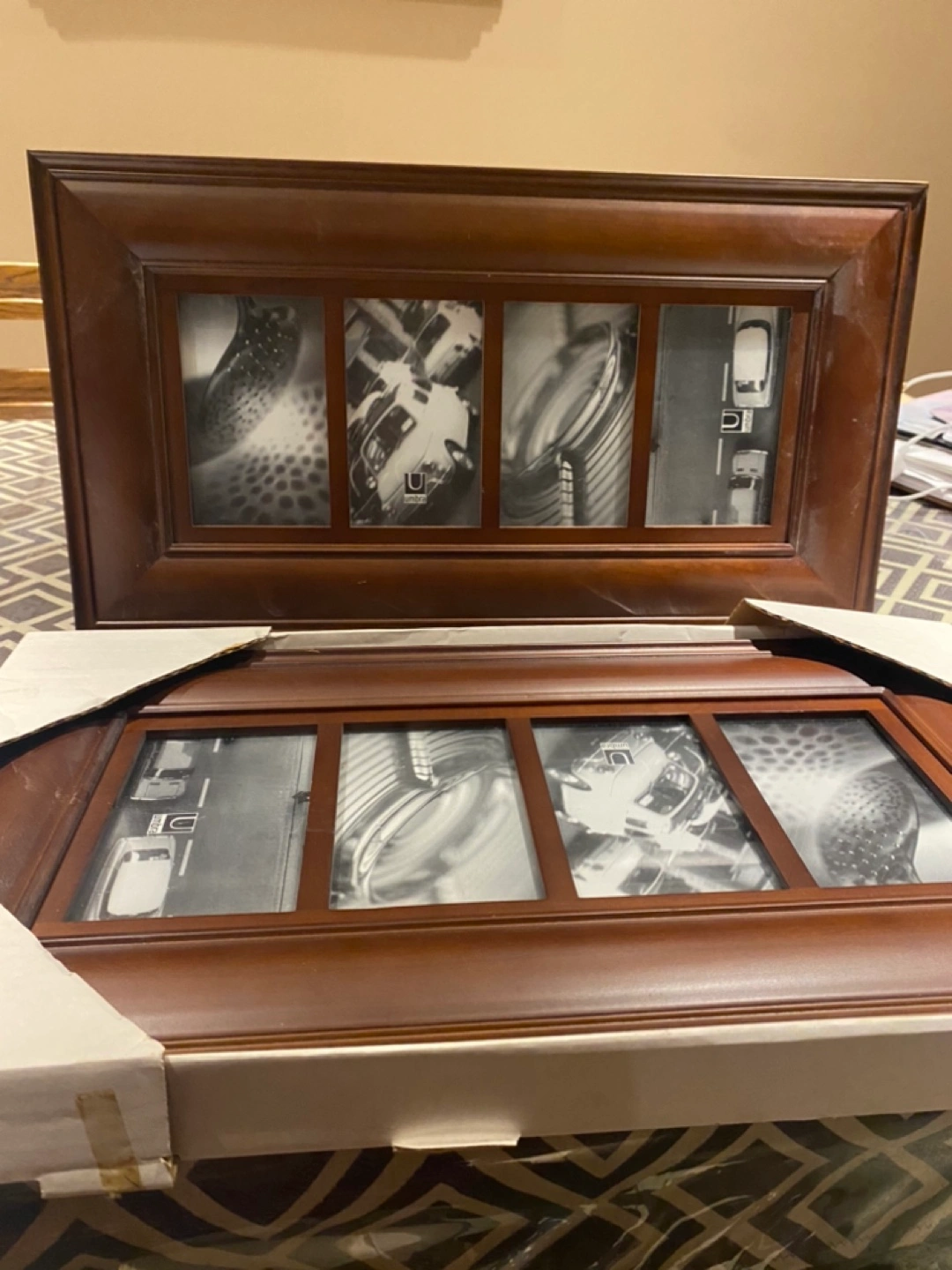 Four-photo picture frame. Brown wood frame. 4" x 6" new in box never used Each is $25.00 Pick up in the Jane and Church Streets Area. Cash only