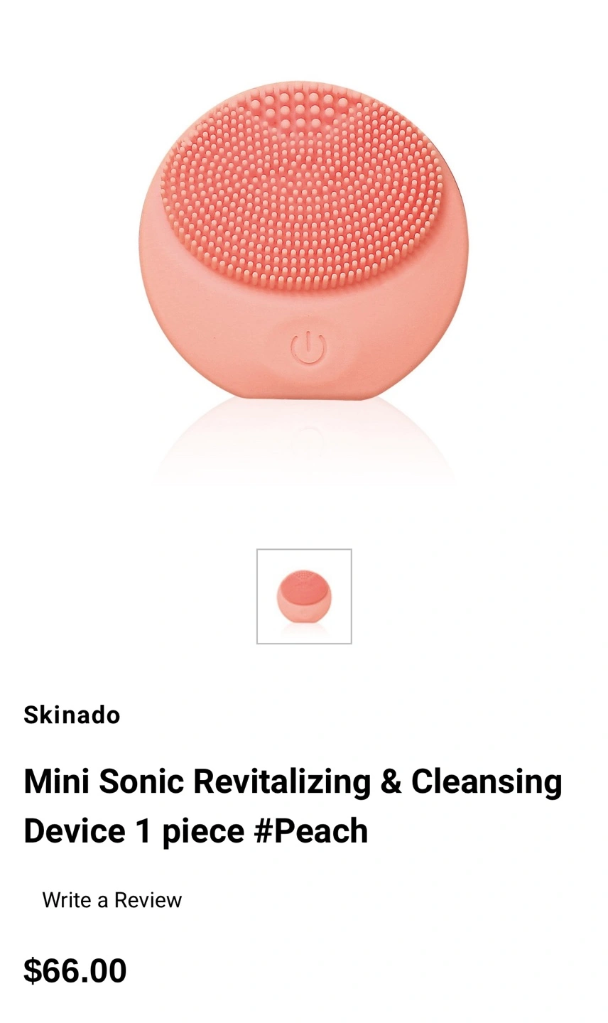 Skinado Mini Sonic Revitalizing & Cleansing Device. Peach colour. Portable! Easy for travel! Description: SKINADO Sonic Revitalising & Cleansing Device Mini (Pink) 1pc advantage: clean skin anytime Helps the skin absorb subsequent skin care products more effectively Quickly introduce skin care ingredients and send them deep into the skin Exquisite and compact, easy to carry, waterproof design Deeply purifies the skin, quickly introduces skin care ingredients and sends them to the deep layer of the skin, the skin is refreshed, instantly becomes clear and bright, and emits youthful luster