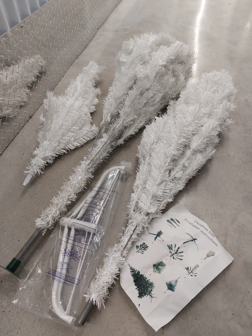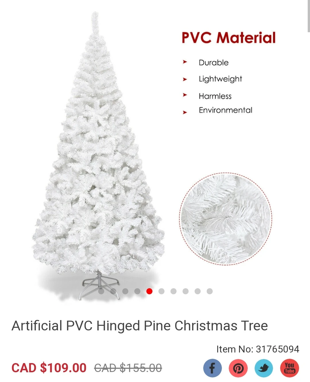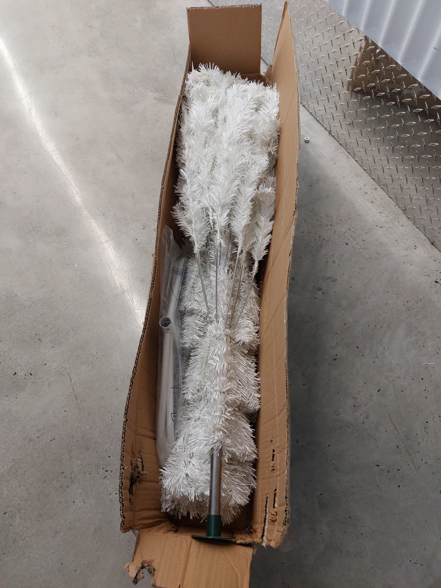 Artificial PVC Hinged Pine Christmas Tree 7 FT Artificial PVC Hinged Pine Christmas Tree 7 FT Not included Light's Enjoy the look of a traditional Christmas tree, even when you have little space. Get into the holiday spirit with this luscious Christmas tree and decorate your home with holiday cheer. Have yourself a merry little Christmas with this traditional Christmas tree! This Christmas tree with PVC needles and metal stand will show you a natural and vivid tree in the winter holiday. It is stable and durable enough for many years of use for the holiday, especially for Christmas decorations and will bring the holiday cheer to your home without the hassle of traditional trees. This classic pine unlit Christmas tree comes with a durable metal base that can help stand the tree up straight inside or outside of your home and it will add a warm, festive feeling to any setting. Key Features ● Eco-friendly Material: The blades of this Christmas tree are made from high-quality PVC material, which not only makes the tree looks more real and more full but also adds the anti-crush capacity to the tree. ● Easy Setup: Tree comes in 3 pieces for easy assembly (2 pieces tree and 1 stand). To finish the assembly of this tree it requires only 3 steps, after putting branches and metal stand together, all the tree requires you to do is straighten out the branches, so the tree will achieve the best effect. ● Metal Stand: Christmas tree uses metal stand instead of cheap plastic stand, and add a plastic cover on the end of the stand. Through this design, all we want to achieve is to add the stability of the tree and protect your floor. ● Traditional Lifelike Appeal: These artificial branches look ultra-realistic and lifelike. Also, branches are easily fluffed to create a beautiful look and let you easily place lights and ornaments. ● 100% Warranty: We offer you 100% risk-free satisfaction guarantee to let you buy with confidence. We are quite sure that you will be super-impressed with HIGH QUALITY of our christmas tree. Condition brand new The box it's a little damaged Danforth and Eglinton pick up only