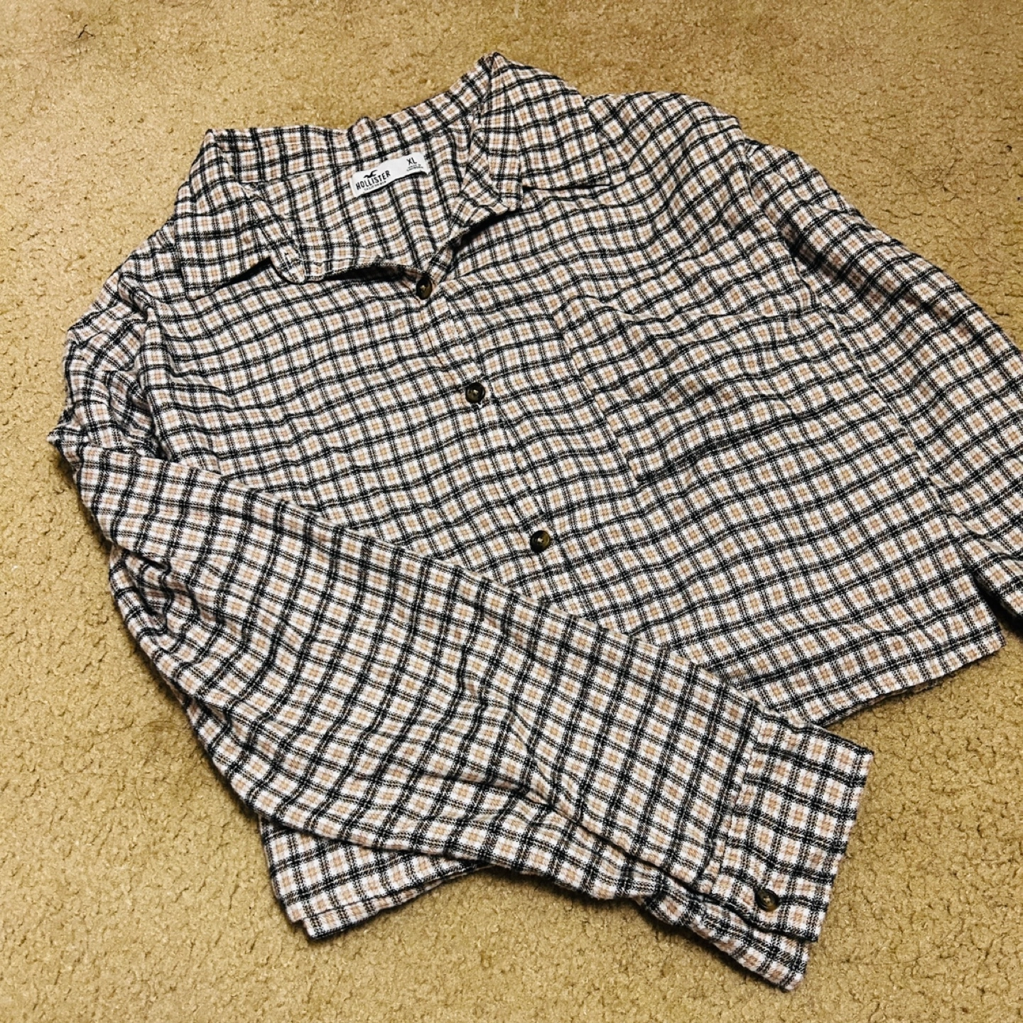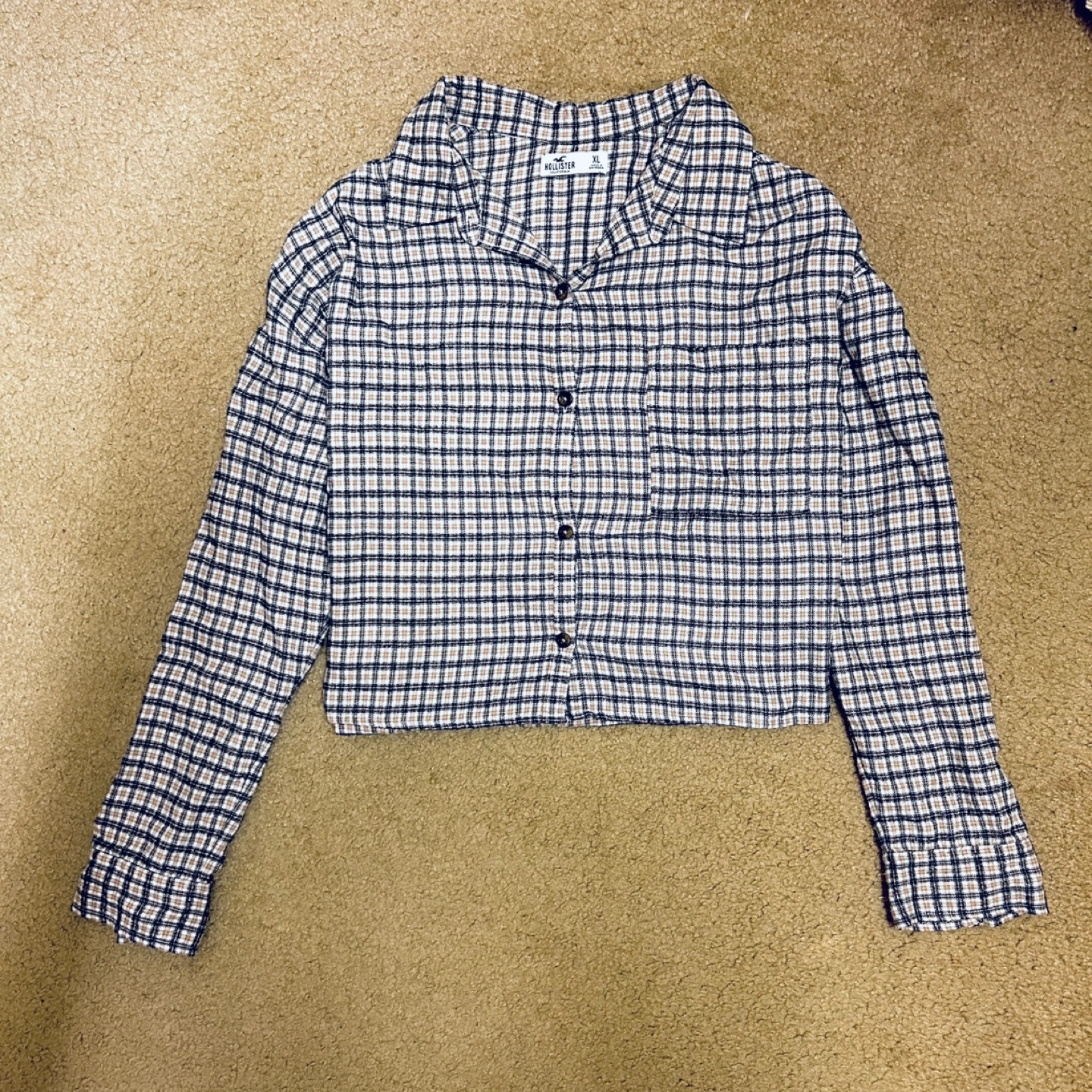 Long sleeve, cropped plaid button up shirt. Size XL. Can be worn on its’ own or layered with other pieces in the fall. Cute as an oversized item as well. Like new; wore a couple times. Selling because I am changing my style. Buy multiple items for a discount. Pick up and cash only.