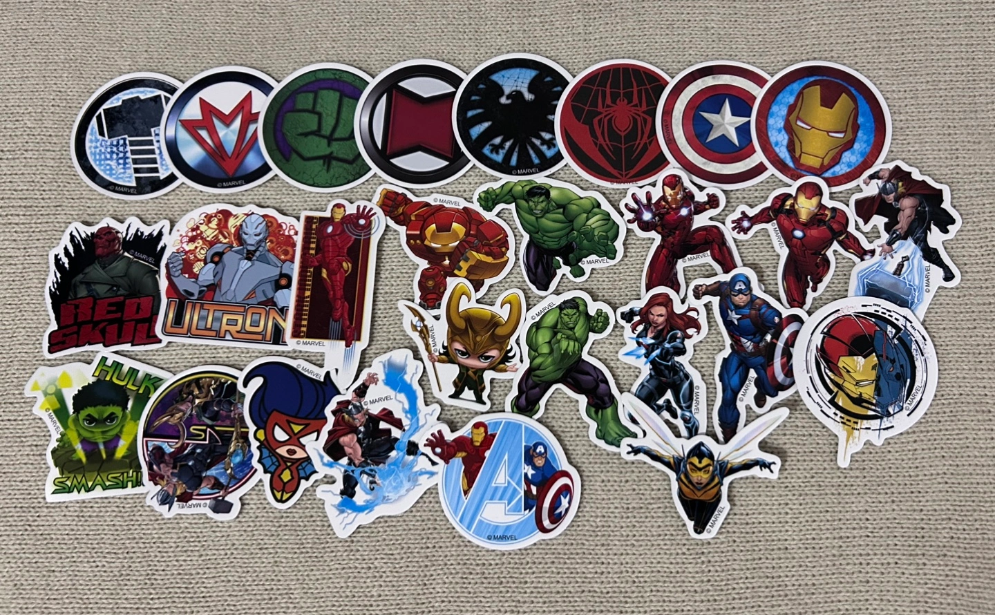 A collection of Marvel stickers featuring different characters and symbols. All for $1