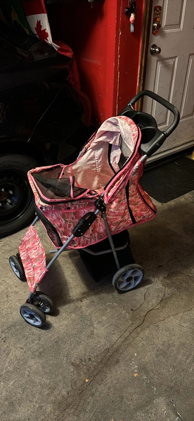 Pink and camo stroller for pets. Open to offers