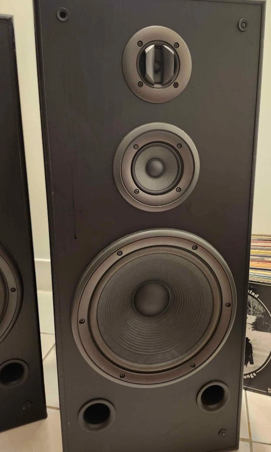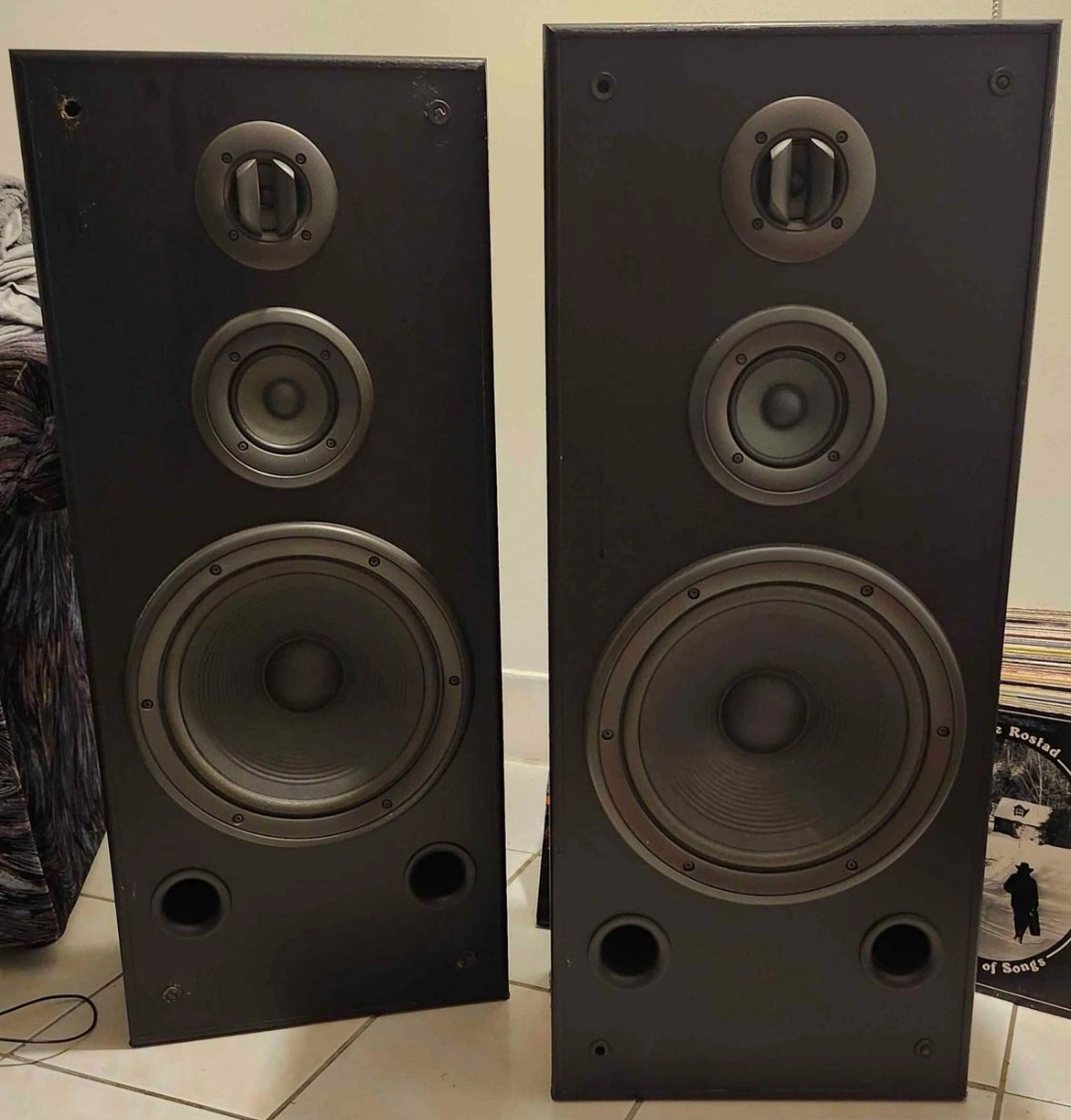 Speakers sound great and are loud as hell. Cabinet has some wear. Still have the grills but they no longer attach correctly. These sound amazing though you'll love em and the price is right! can do a good combo price on these speakers, the Pioneer amp/receiver i have posted for sale and my turntable also posted. you'd get a ready to go loud wonderful system for one low price. toss in the 175 lps i akai have listed and you are rocking!!